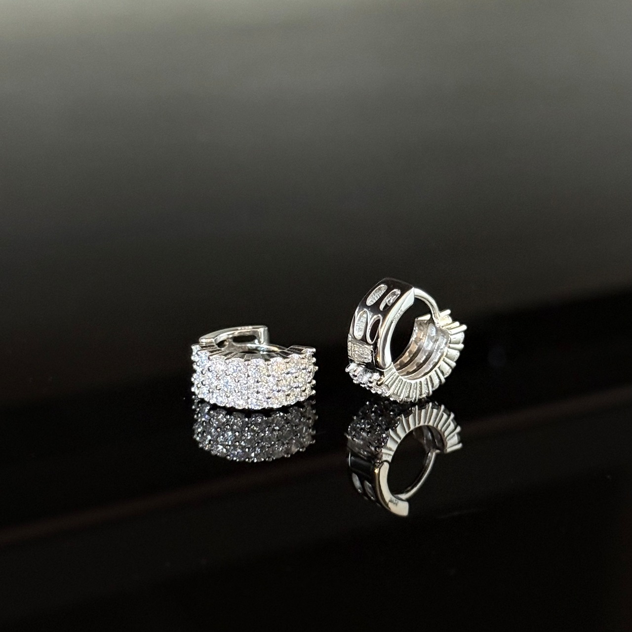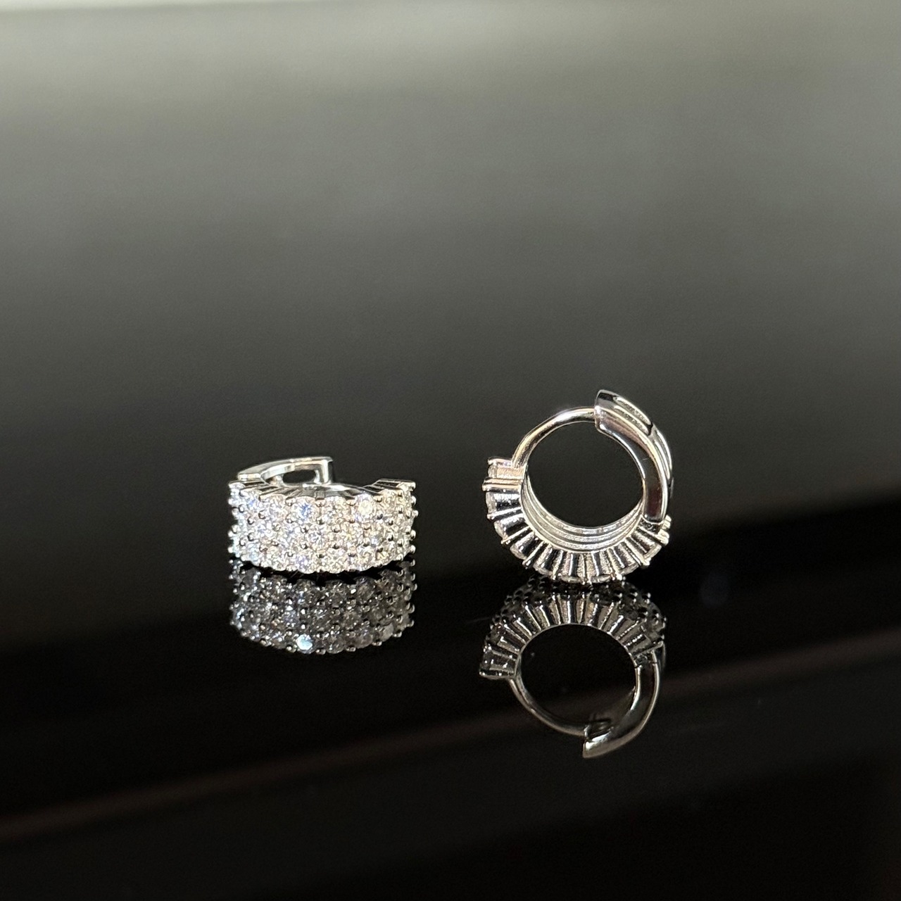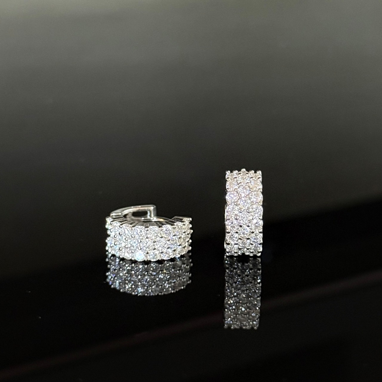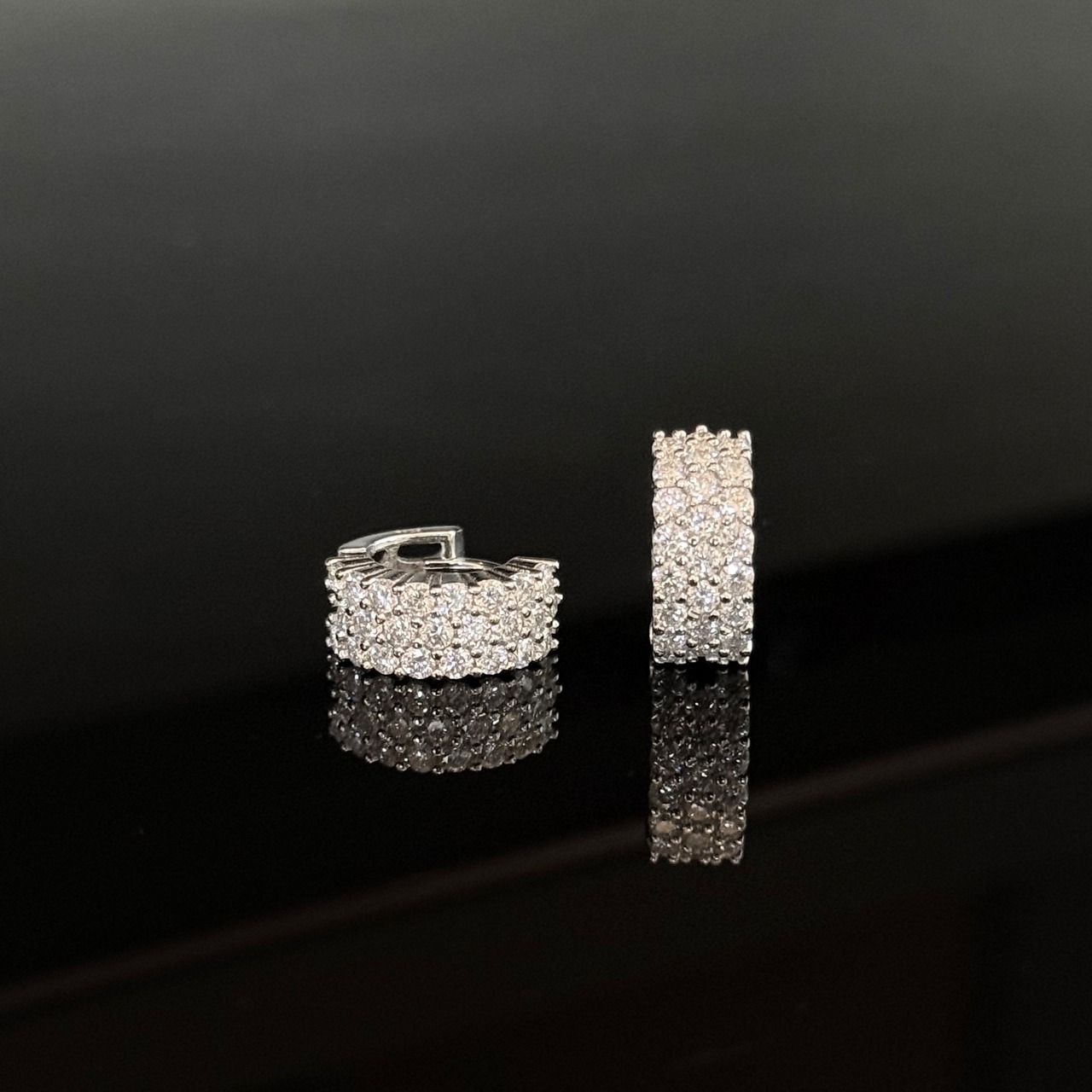 ●両耳 モアサナイトパヴェフープピアス Silver925 プラチナ*ゴールド加工 【MKP0001】