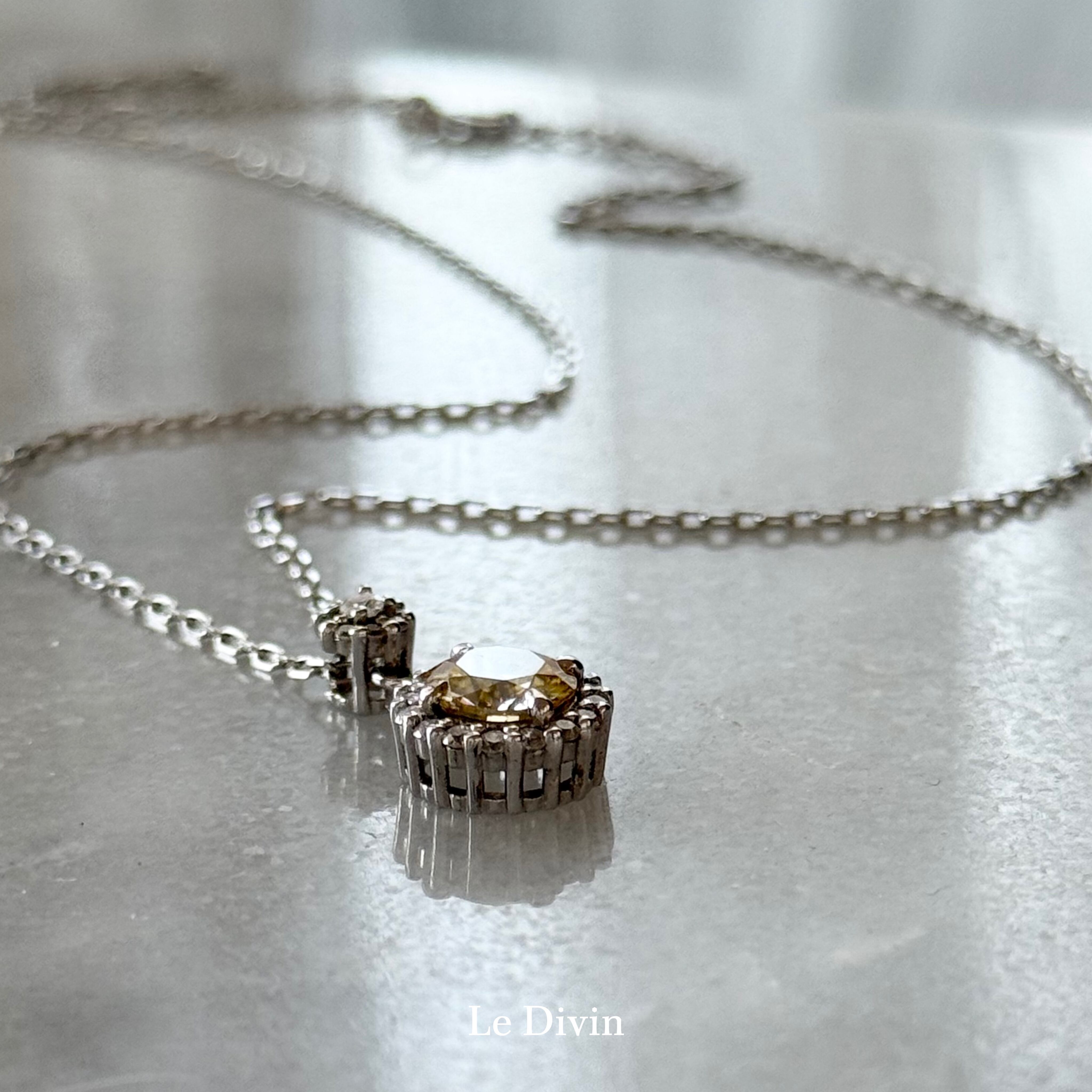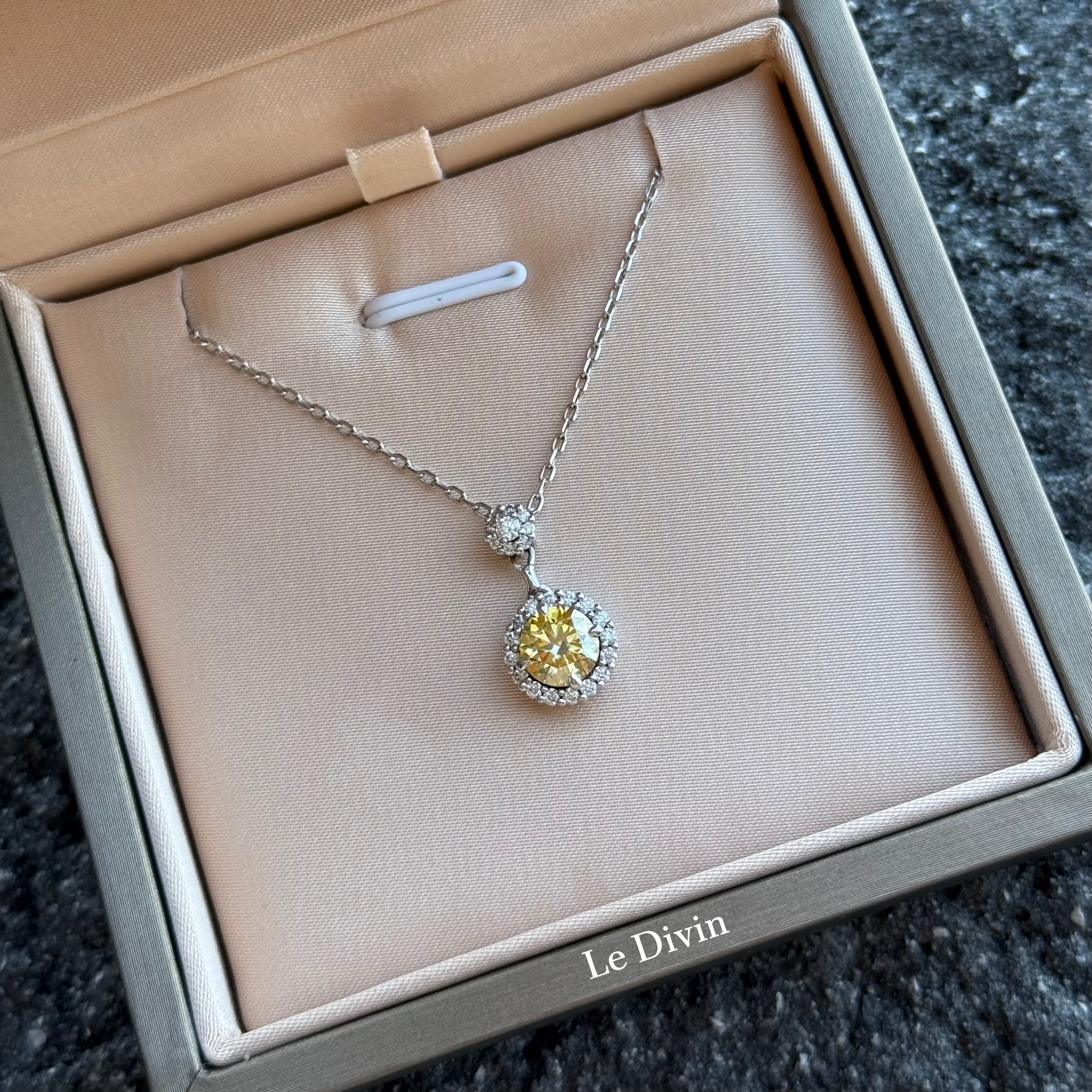 レモンイエロー モアサナイト1.0ct ヘイローネックレス Silver925プラチナ/ゴールド加工【YEH100】