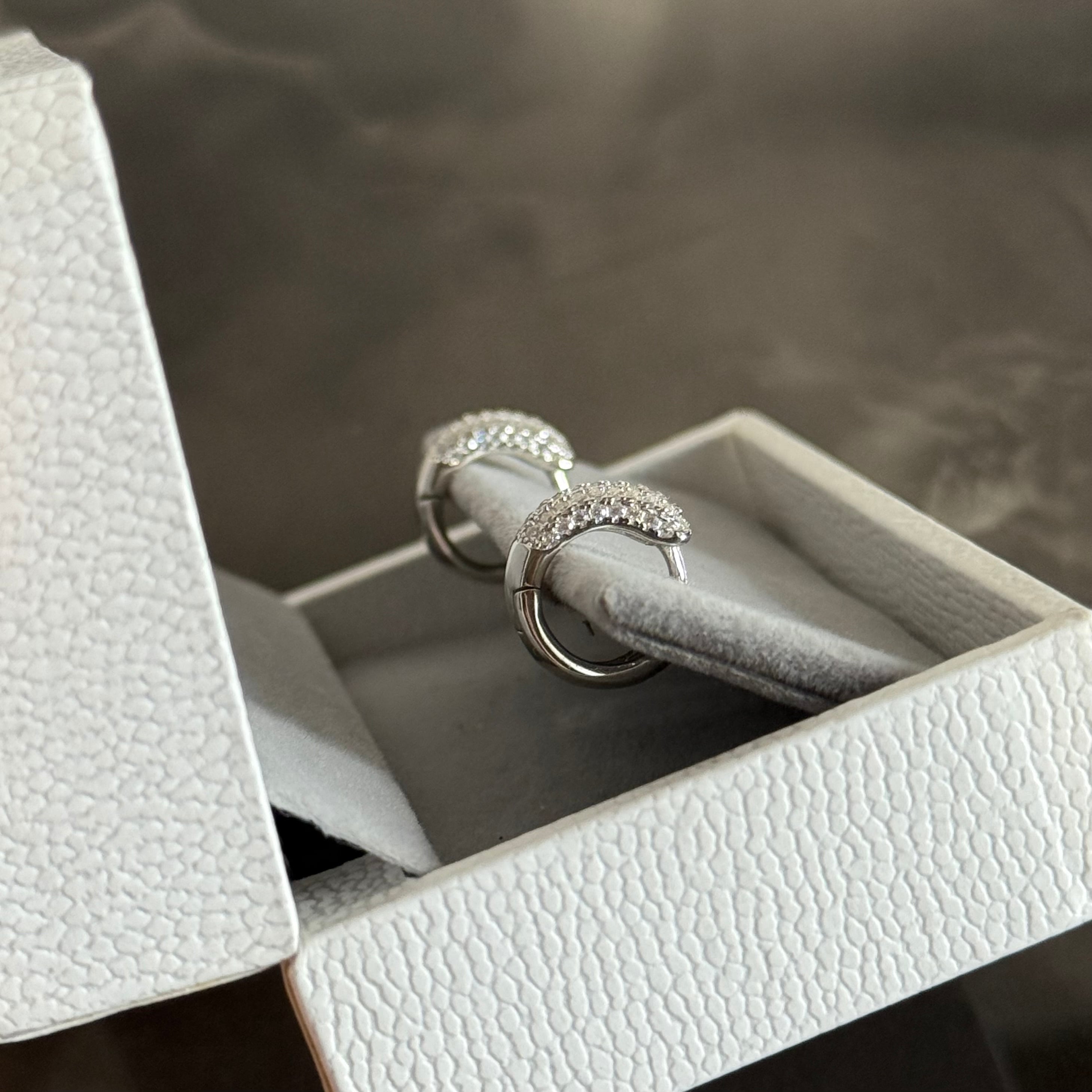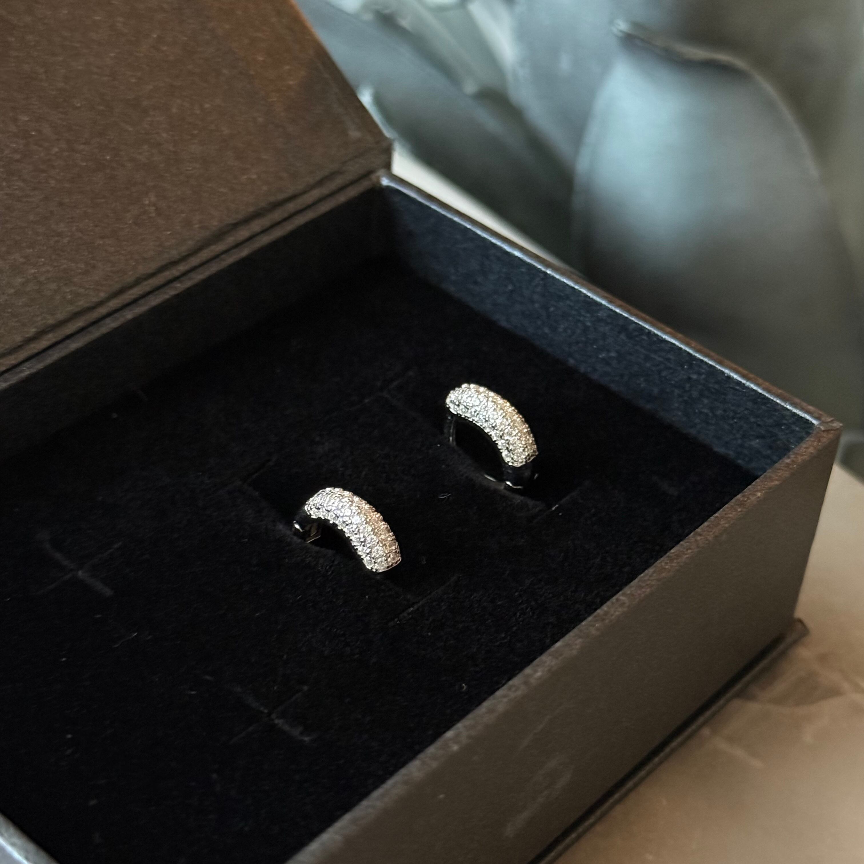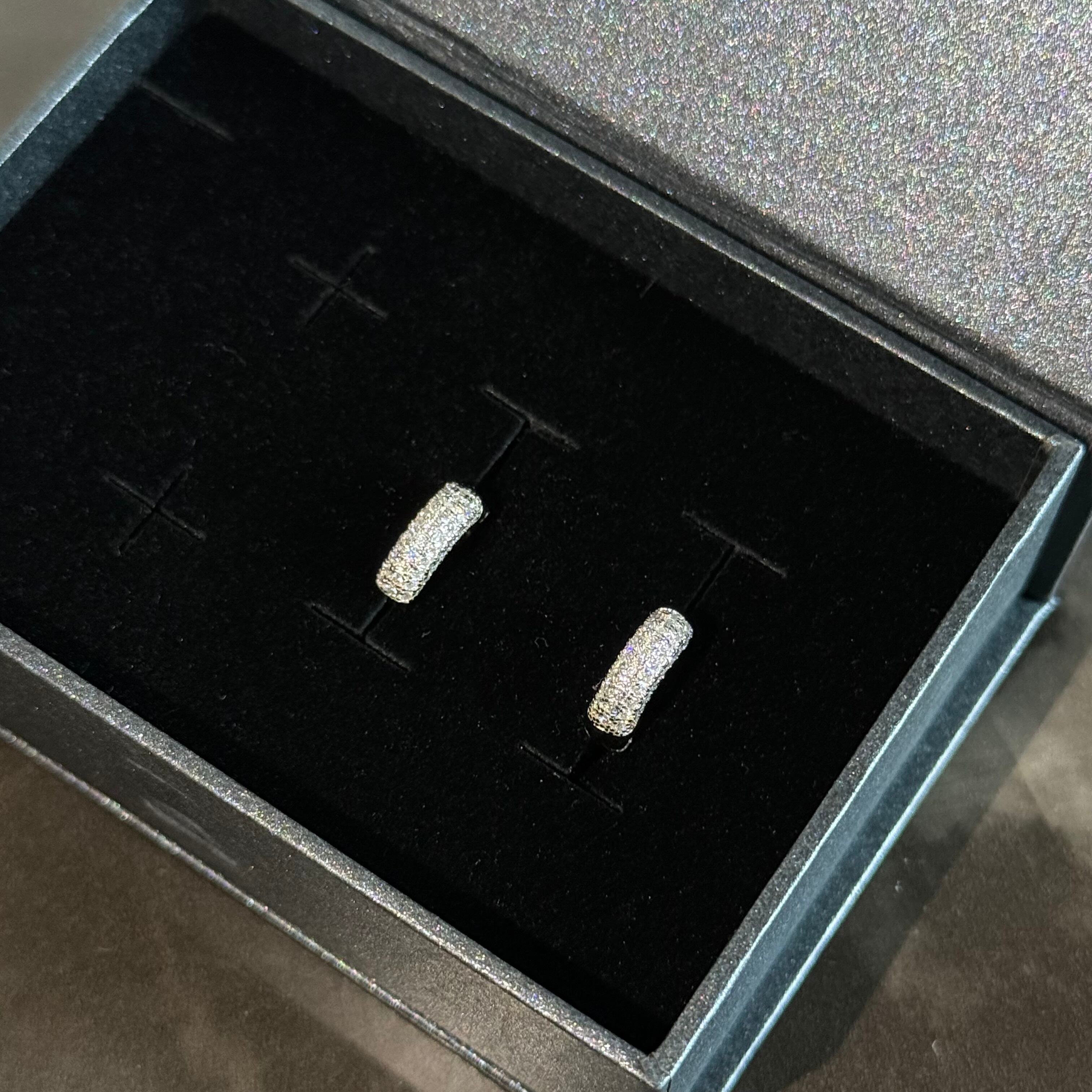 ●両耳0.46ct モアサナイト パヴェミニフープピアス Silver925プラチナ加工 アレルギー対応【PS1166】