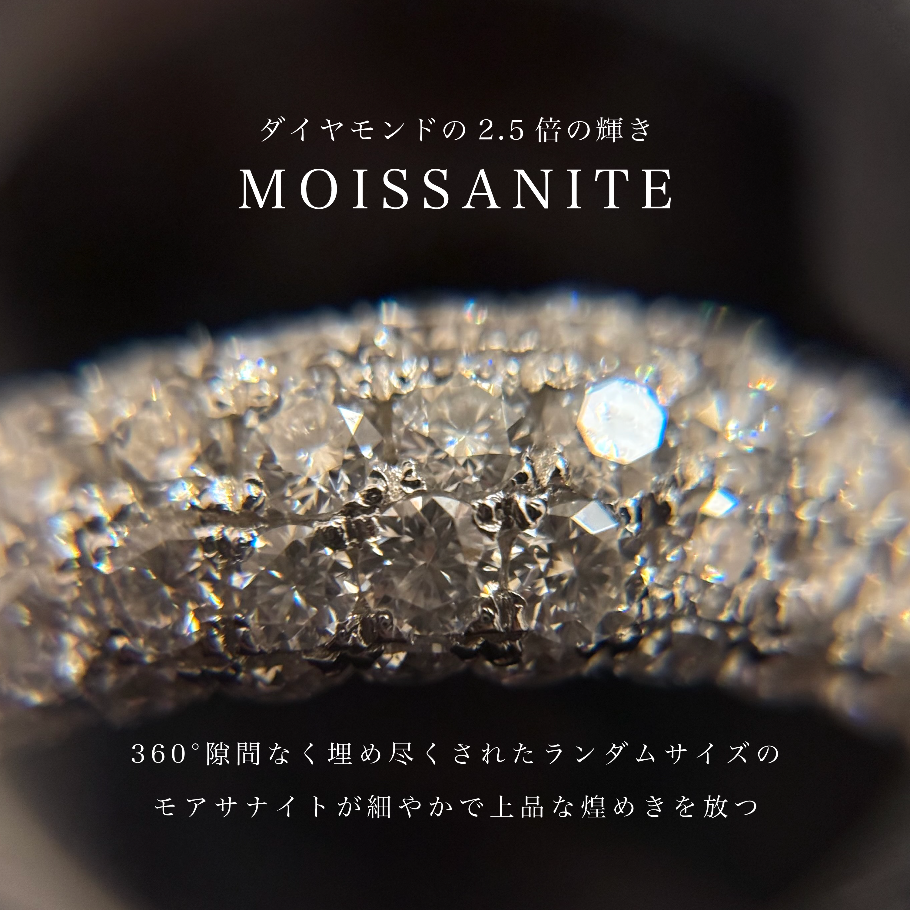 D色の美しいモアサナイトがぎっしりと詰まった贅沢なフルエタニティリング。職人が一つ一つ丁寧に仕立て上げます。