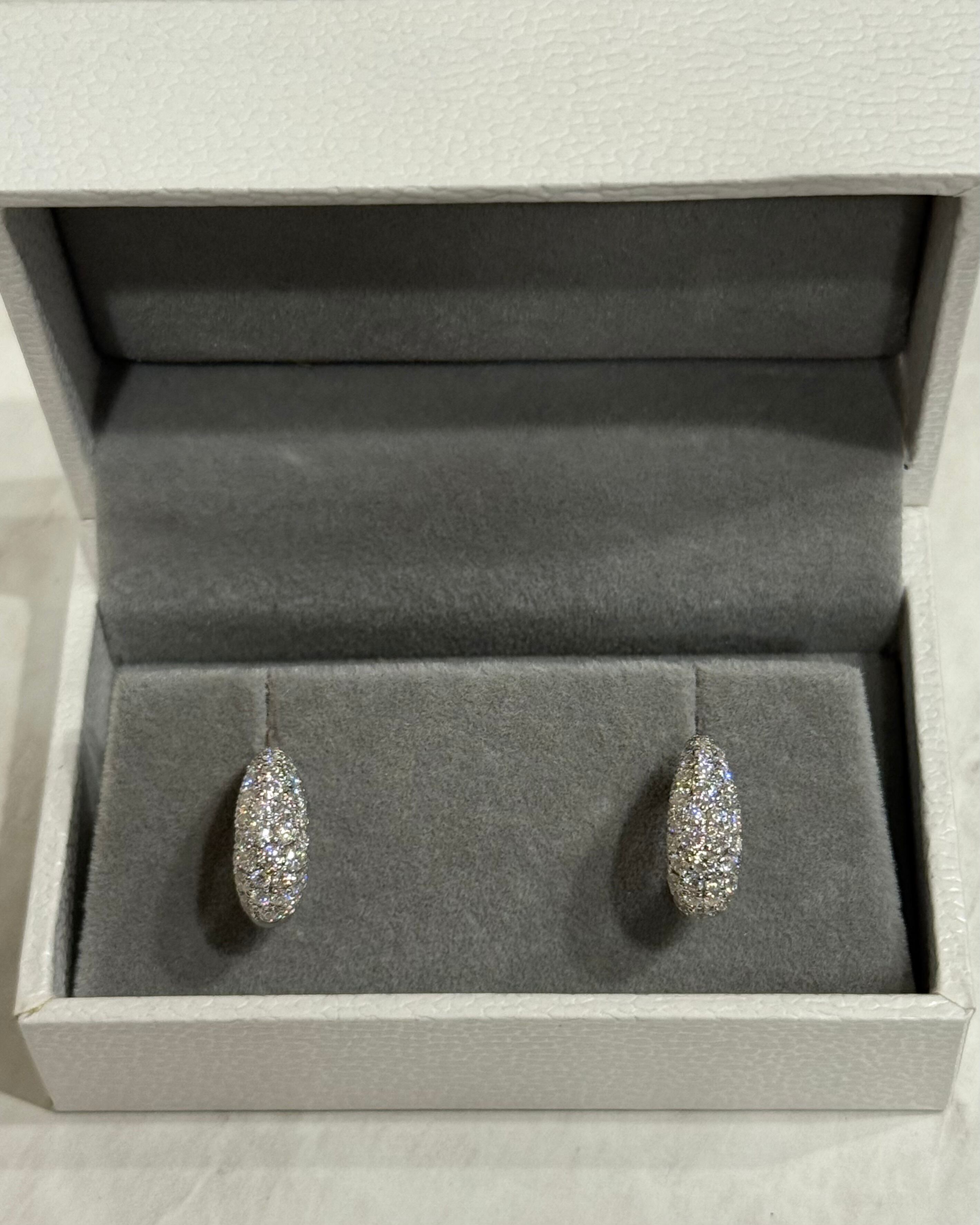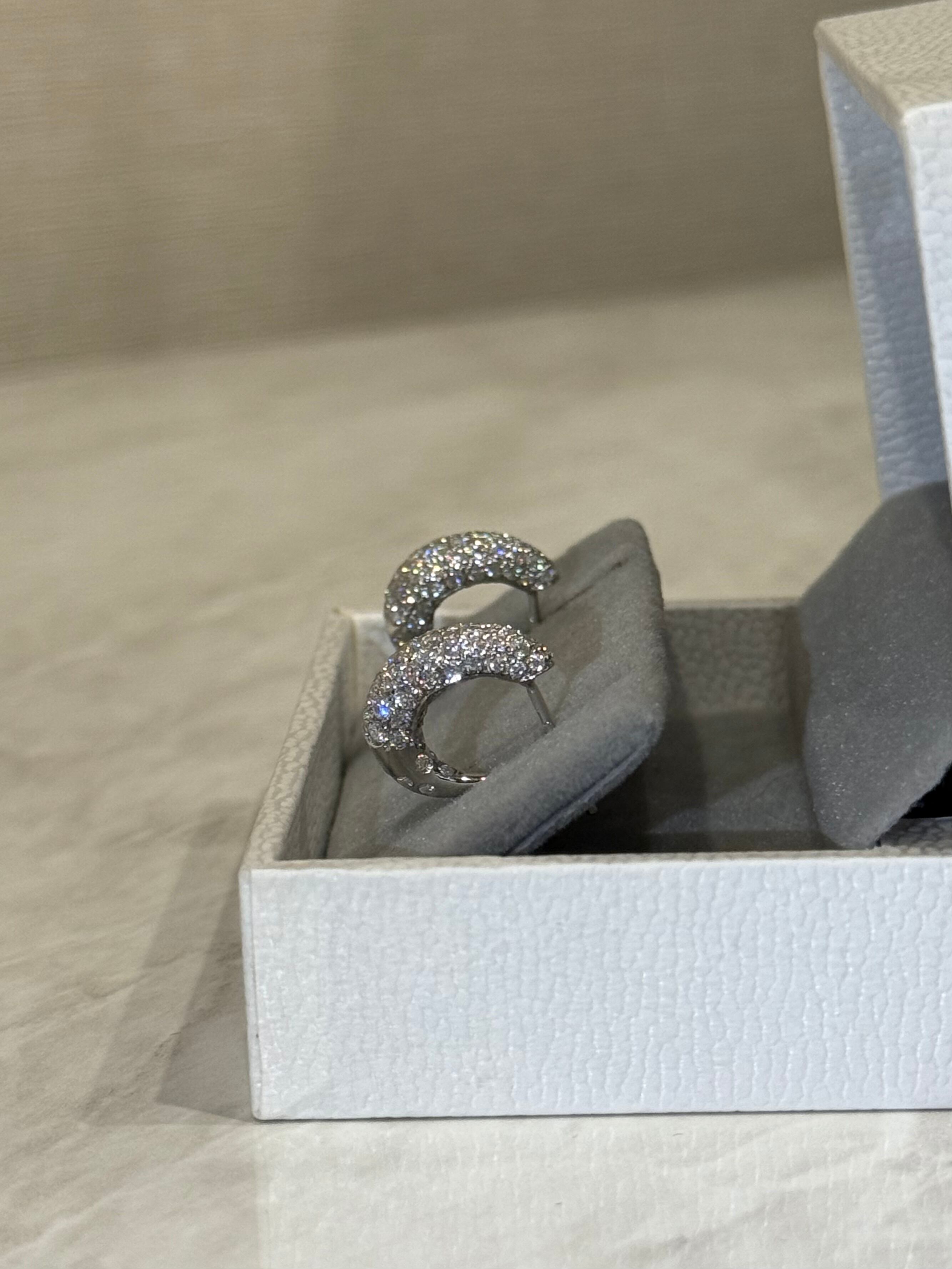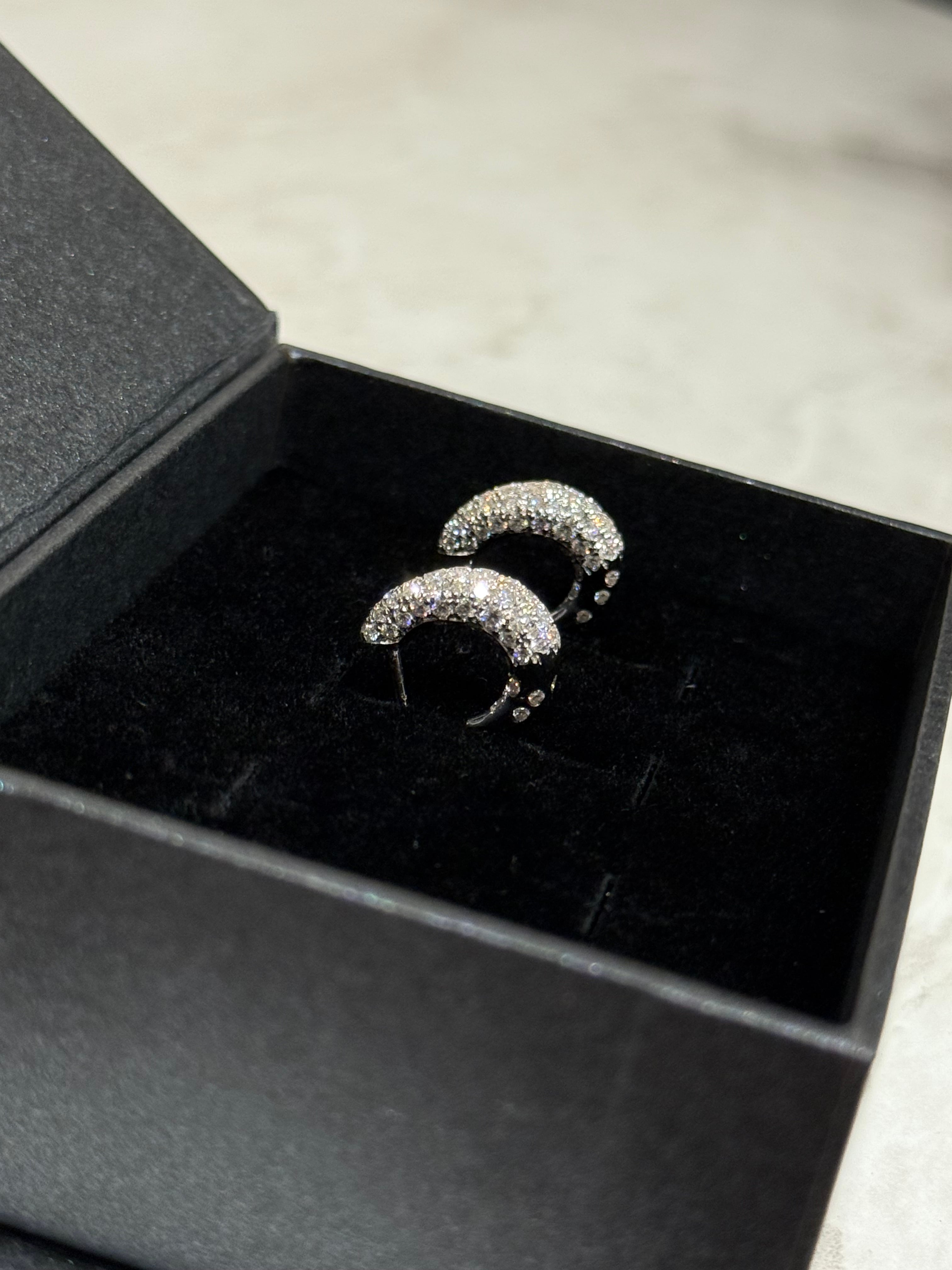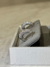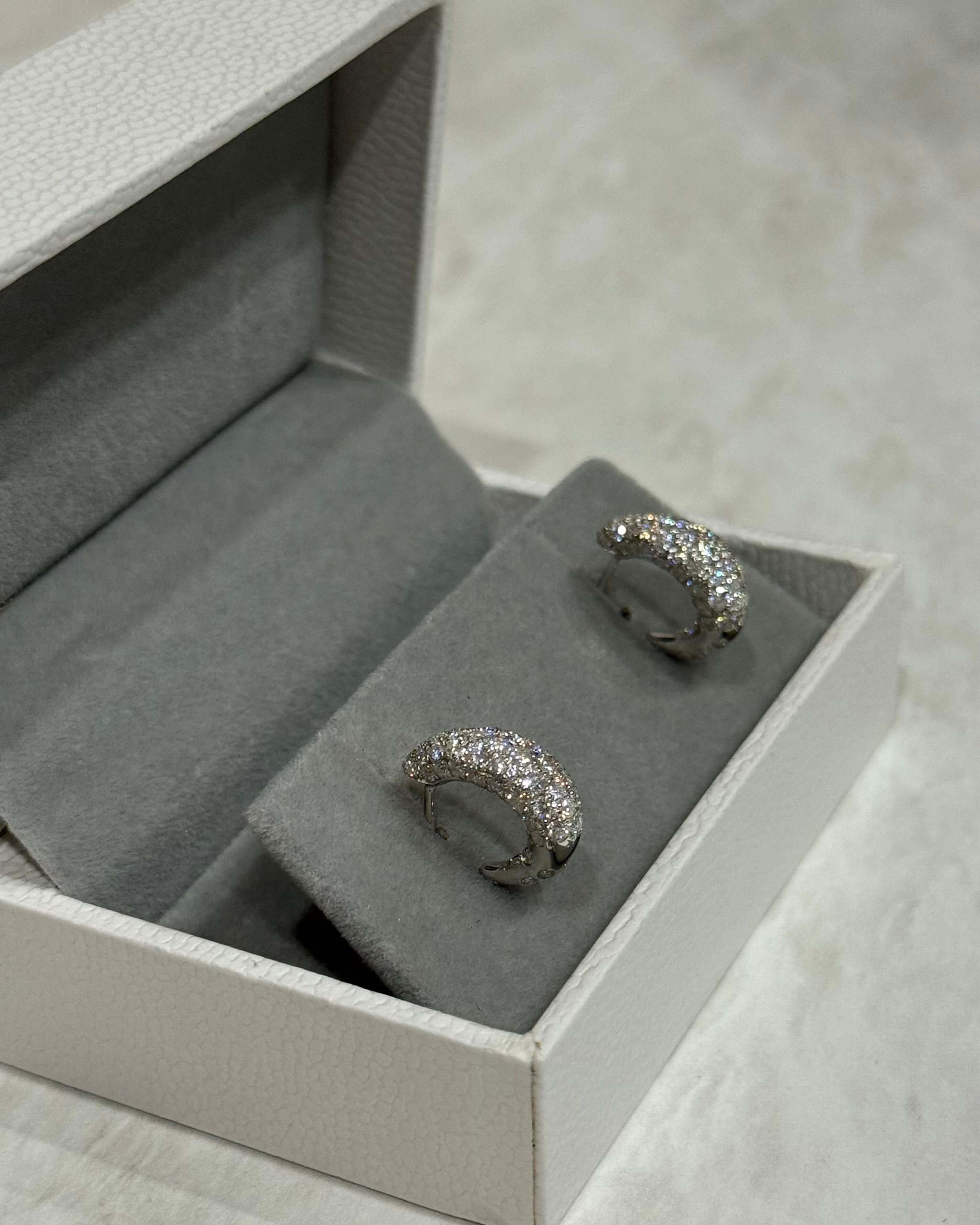ぽってりとしたシルエットが魅力のパヴェピアスです。ランダムサイズの石を使用することで散りばめられたような煌めきが耳元を彩ります。銀をたっぷりと使用しており、程よい重みでより高級感を感じていただけます。