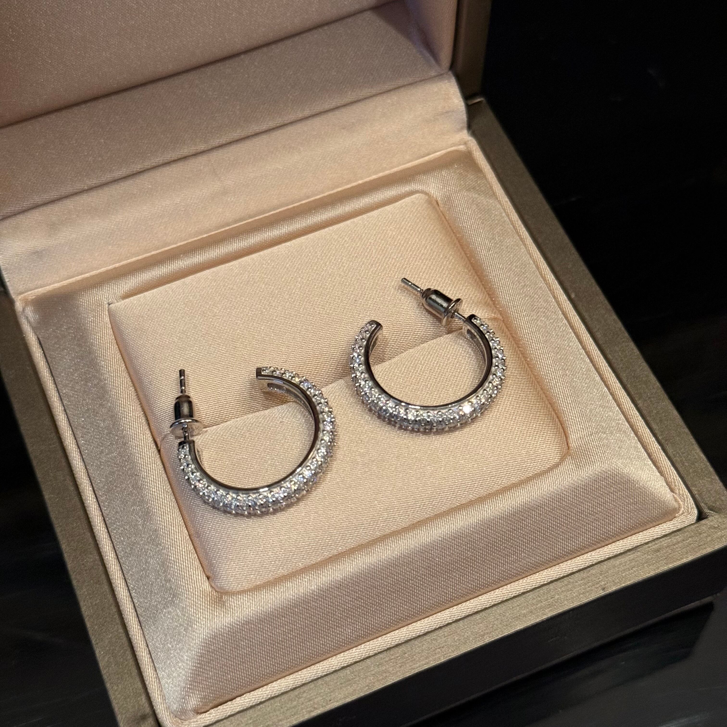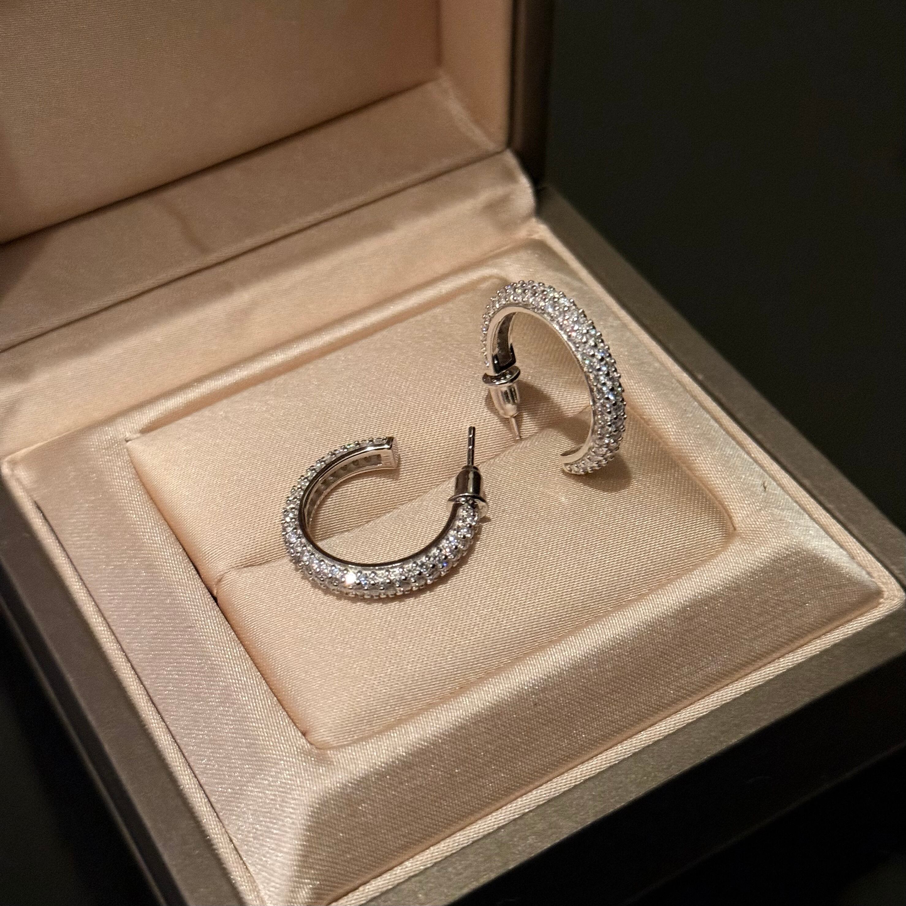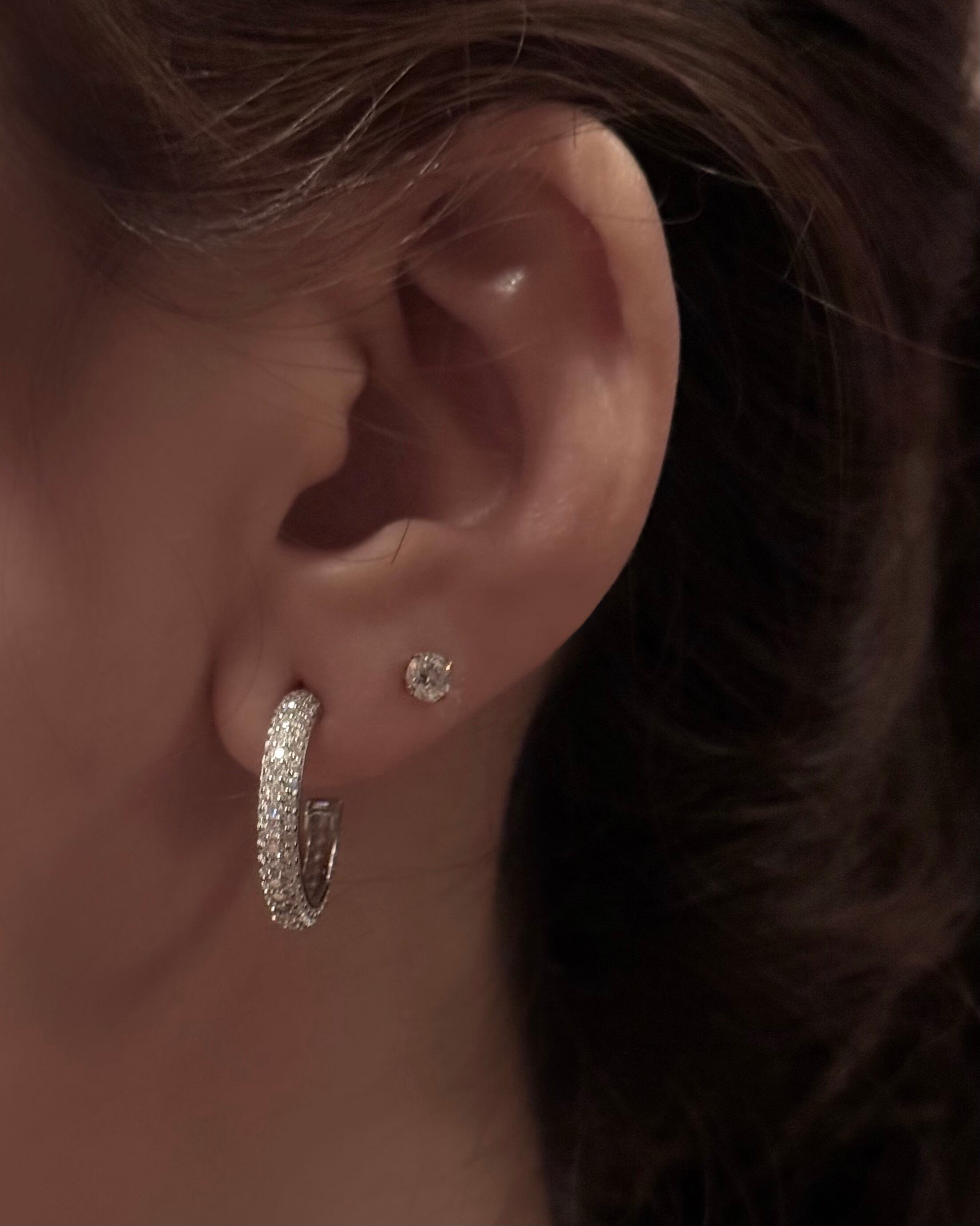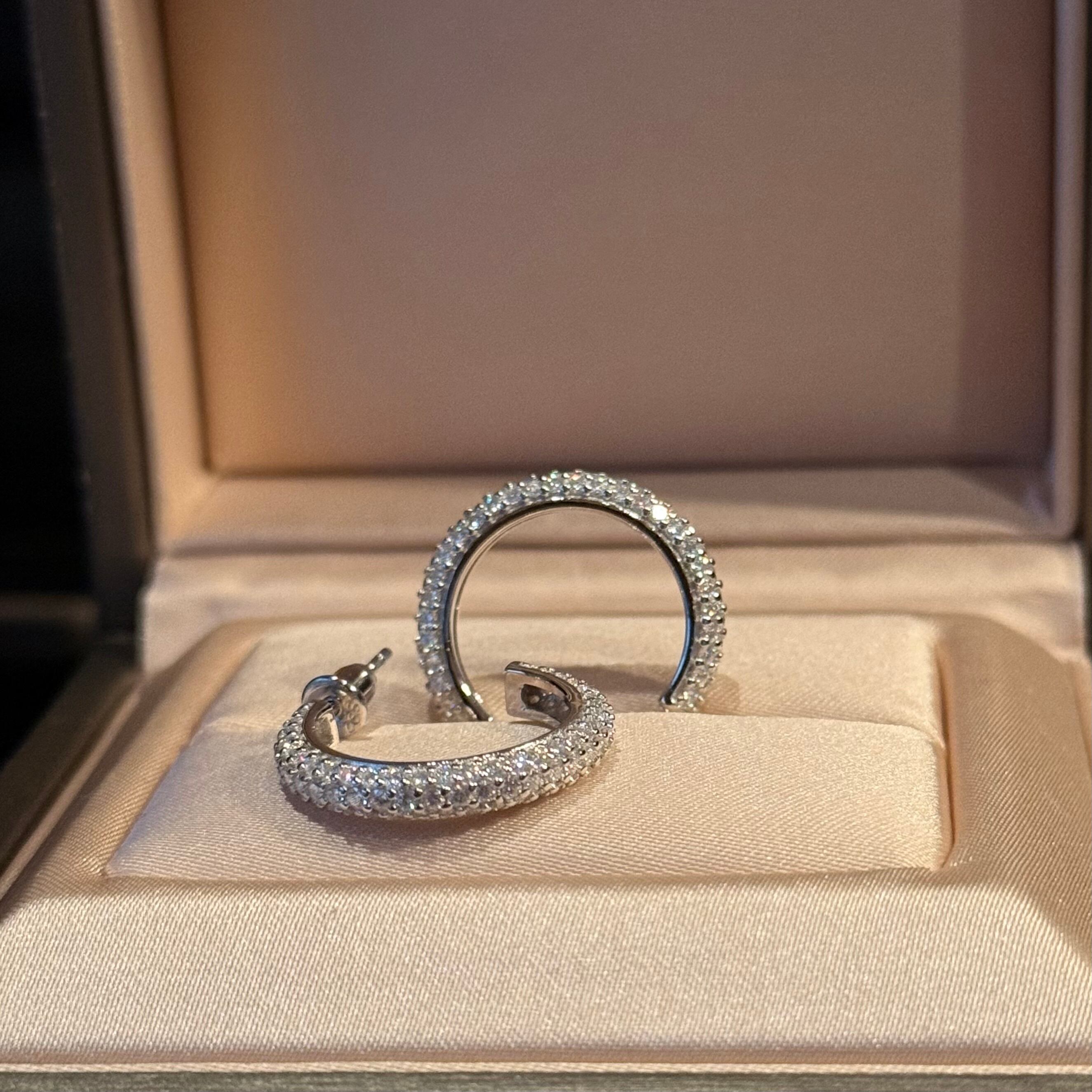 モアサナイト ミディアムパヴェ フープピアス Silver925プラチナ加工 アレルギー対応【MPH0085】