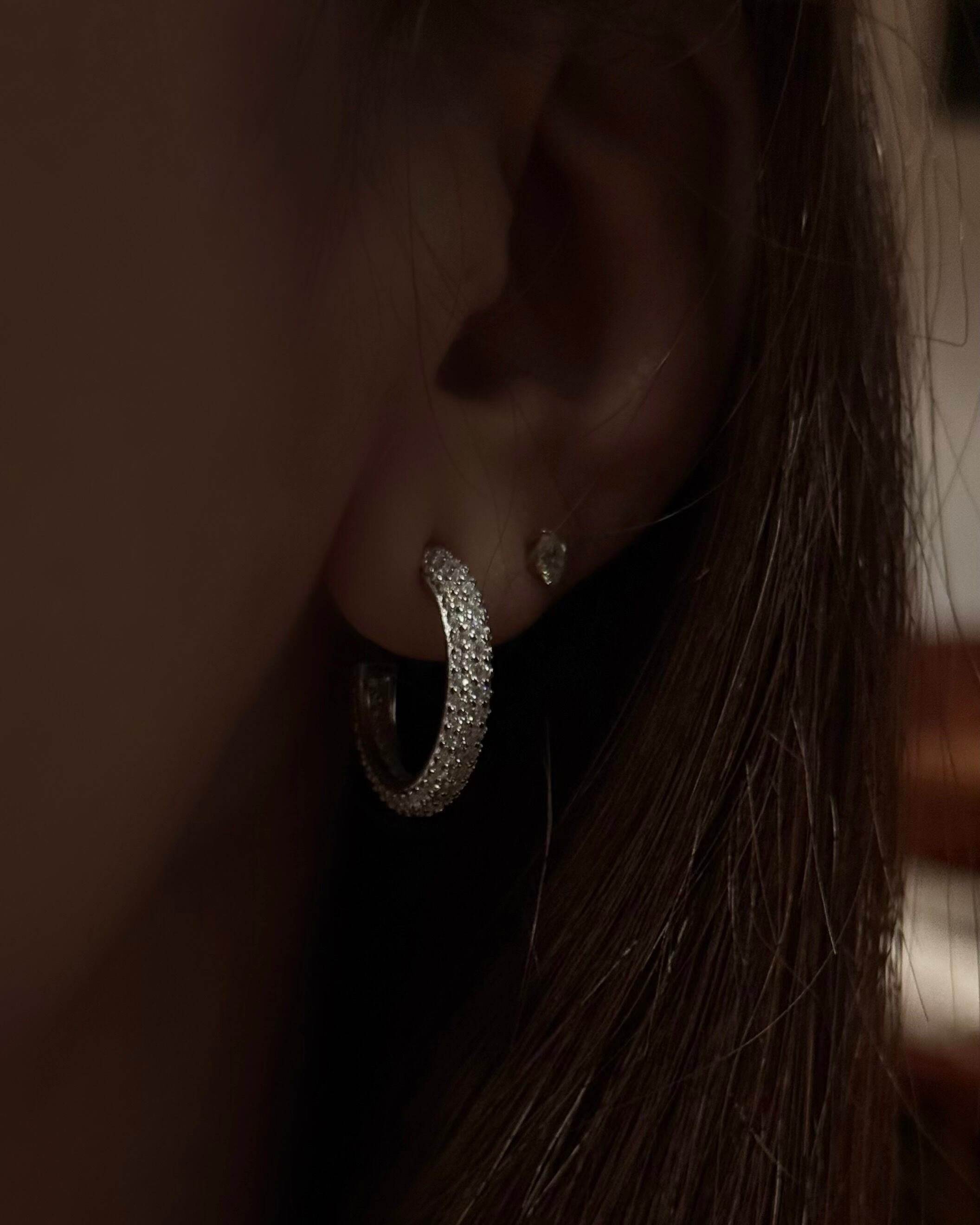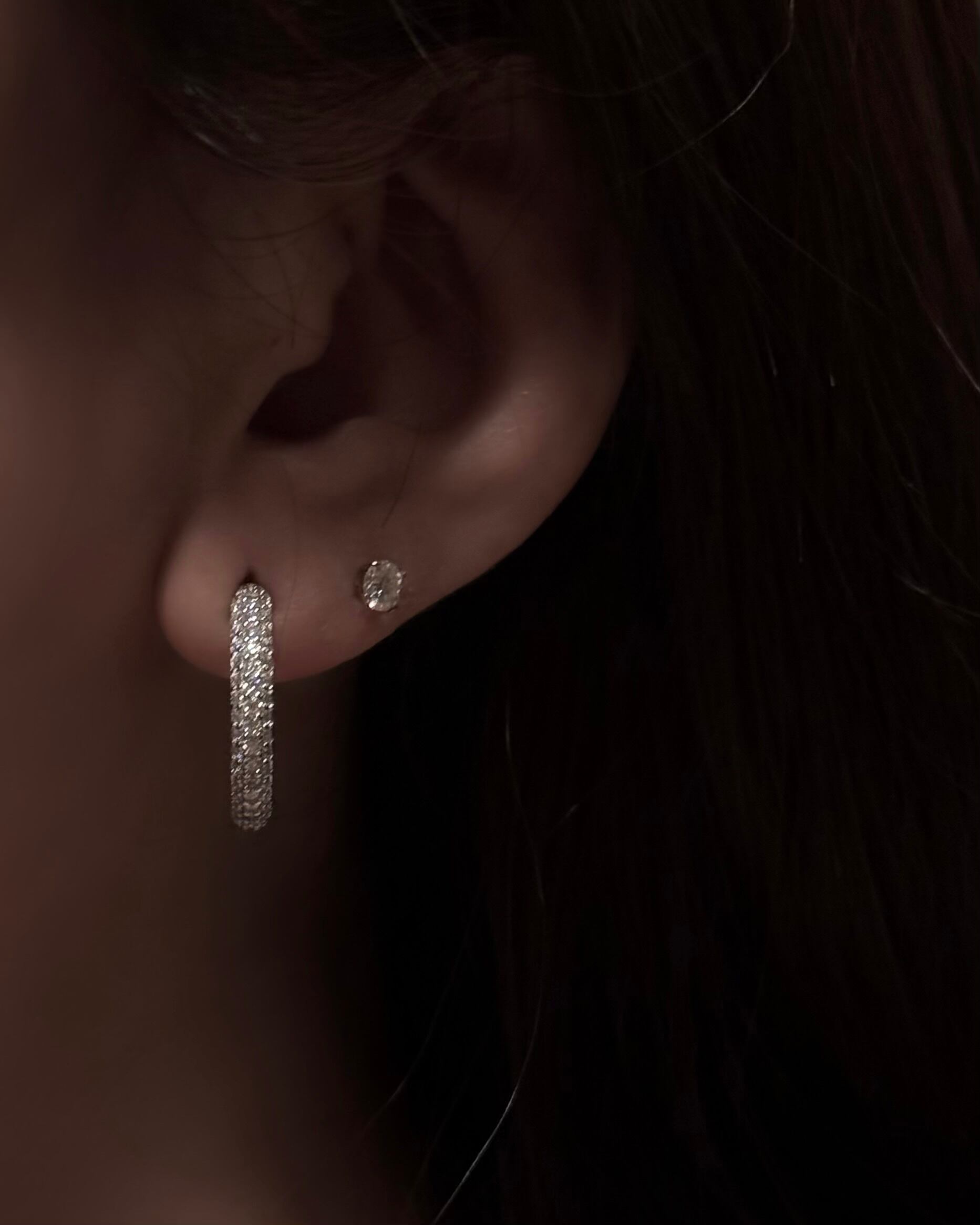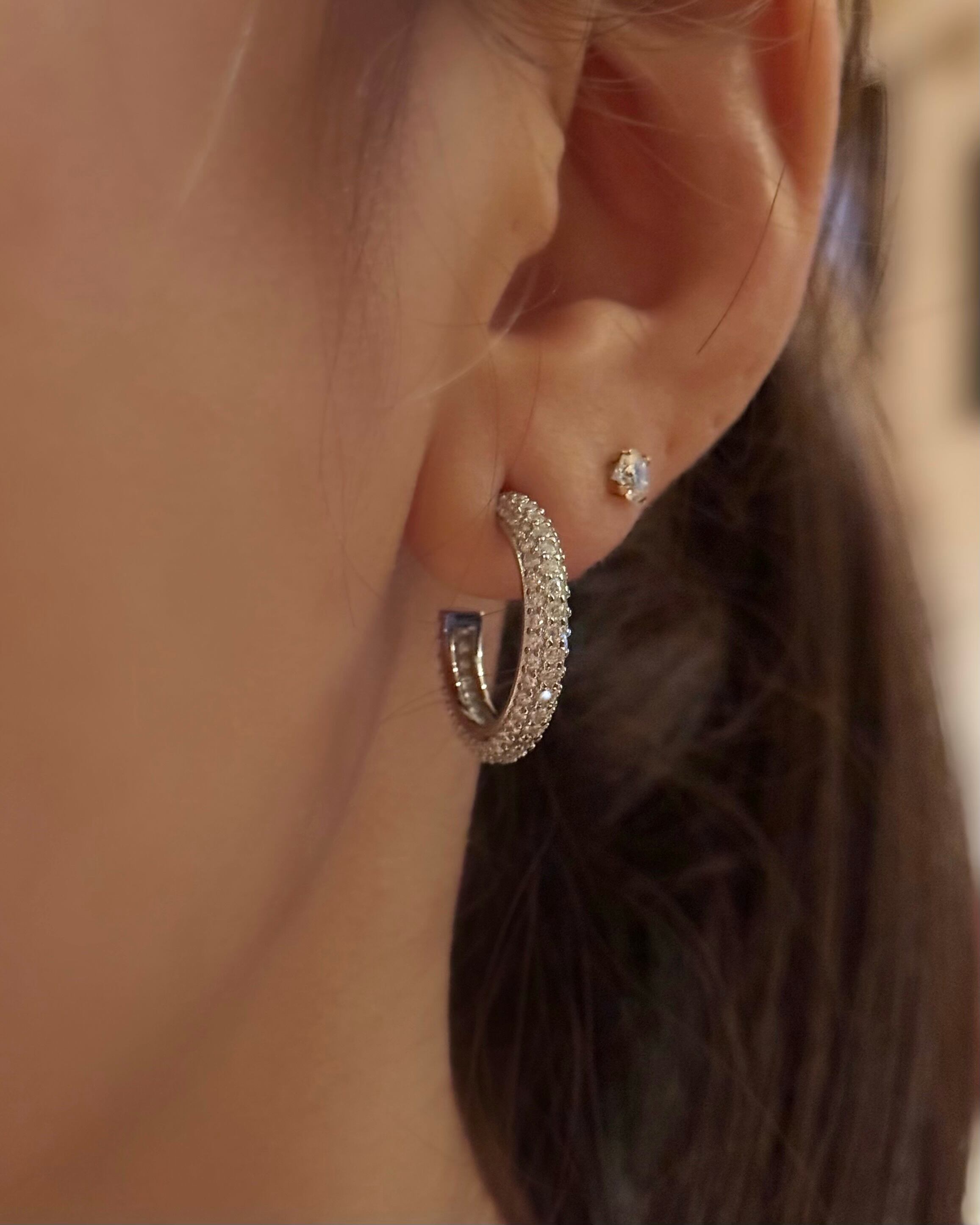 モアサナイト ミディアムパヴェ フープピアス Silver925プラチナ加工 アレルギー対応【MPH0085】