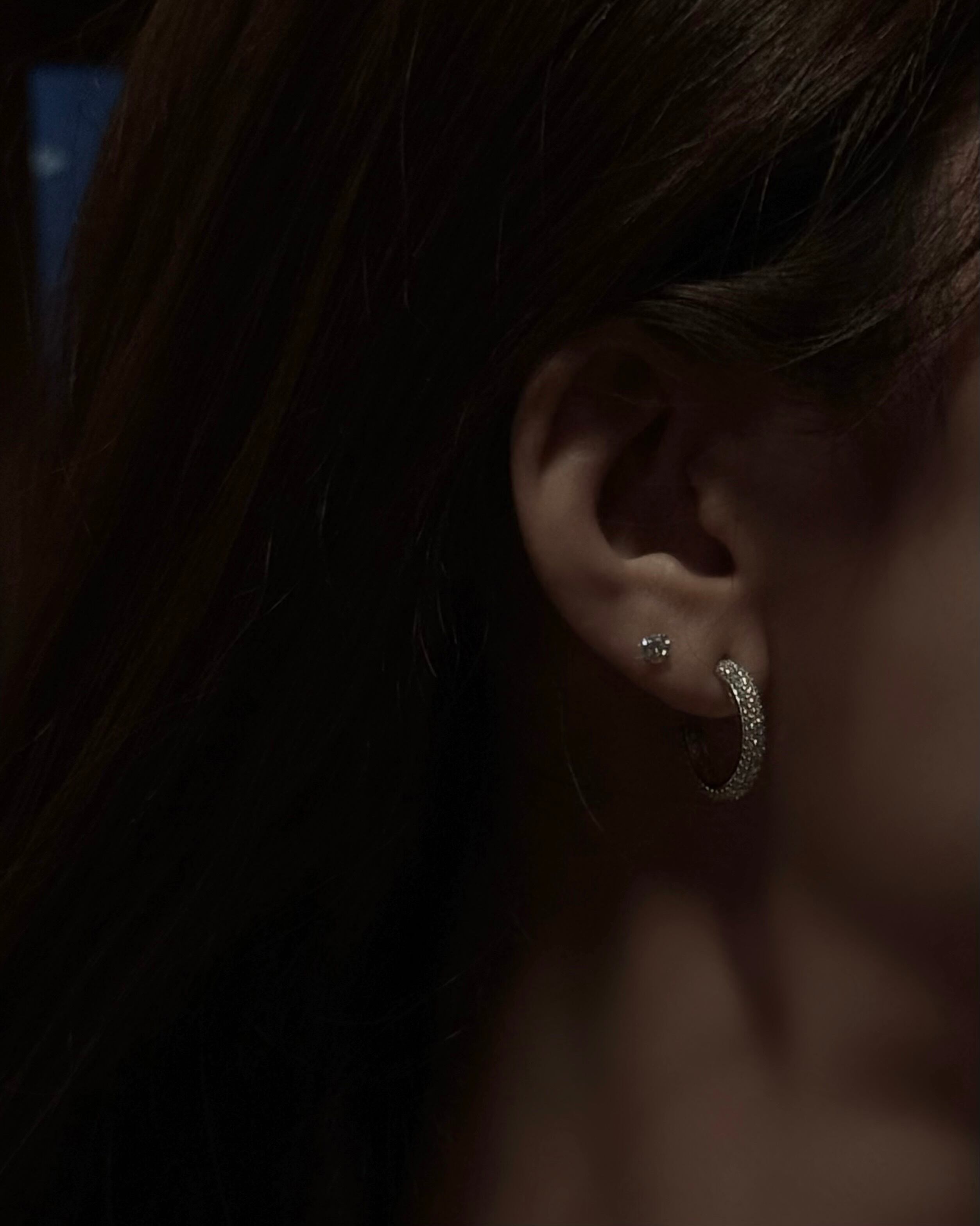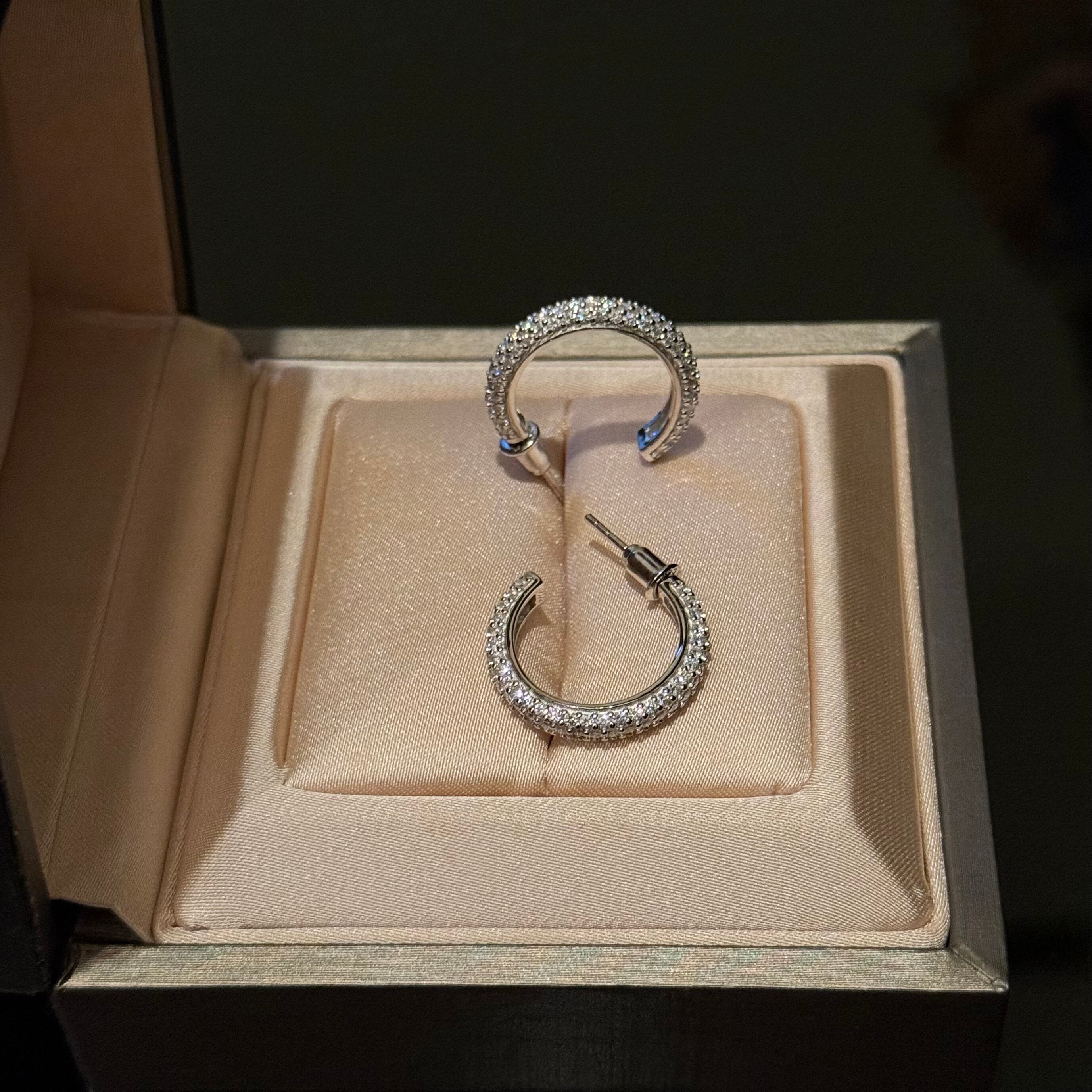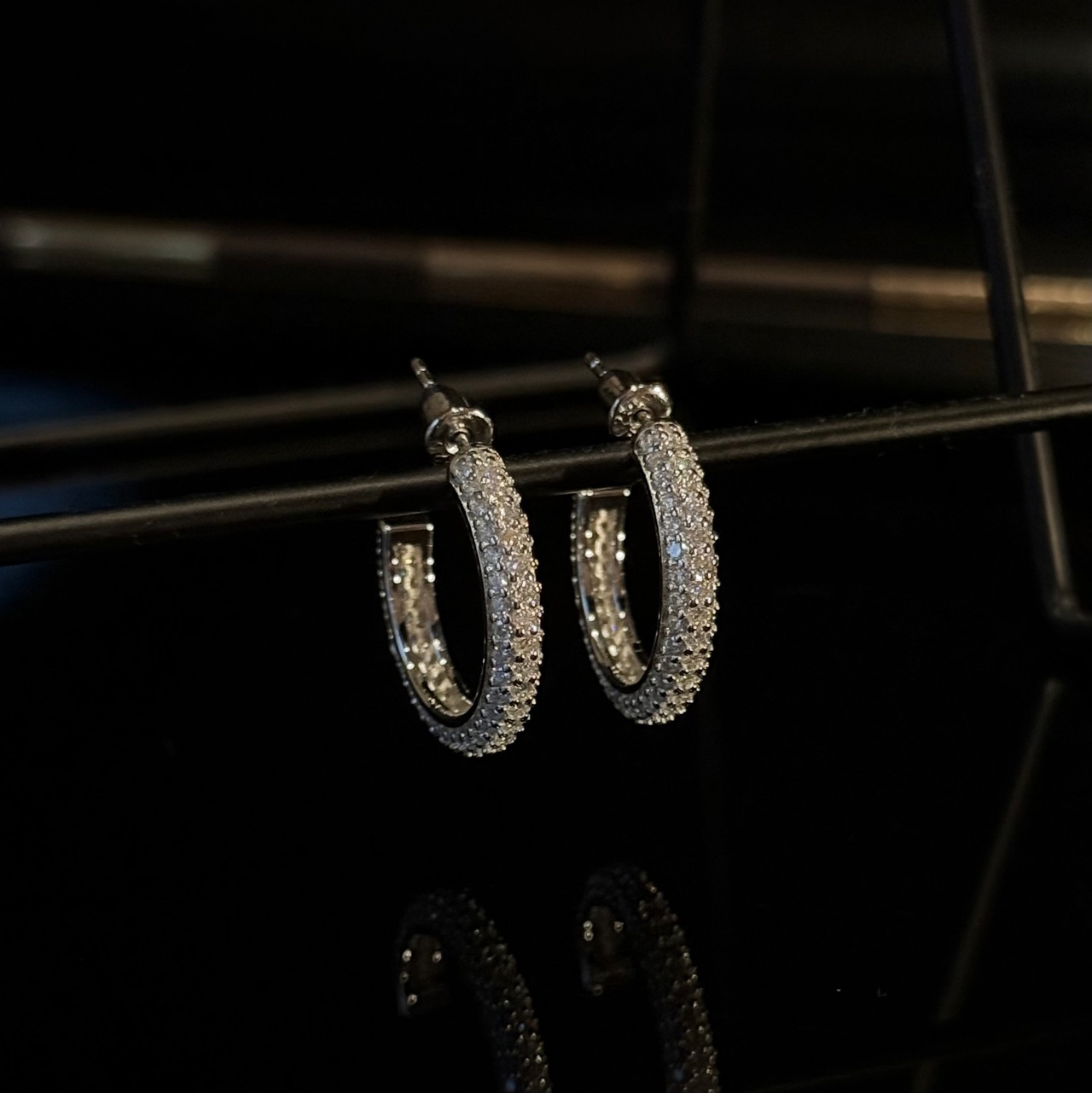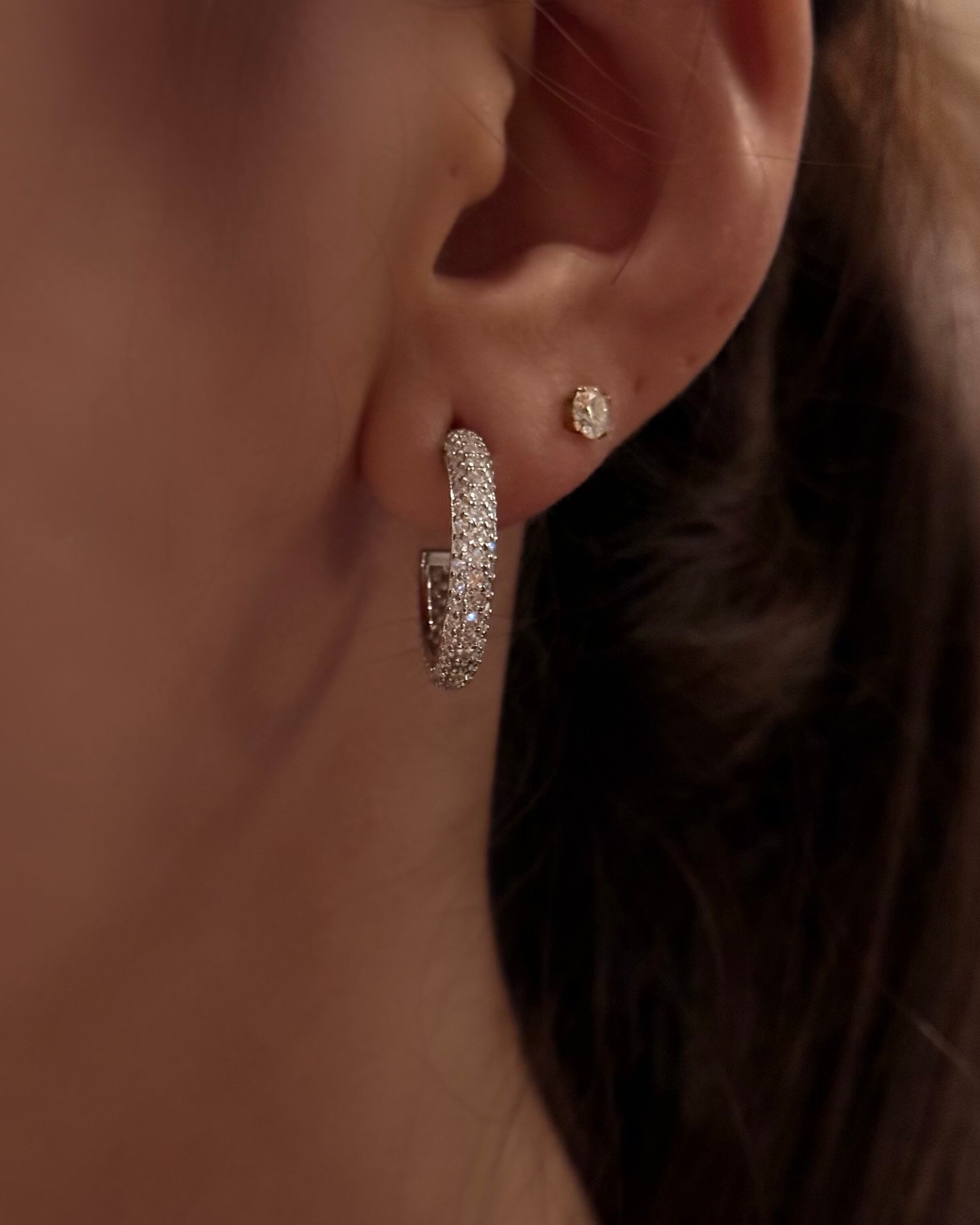 モアサナイト ミディアムパヴェ フープピアス Silver925プラチナ加工 アレルギー対応【MPH0085】