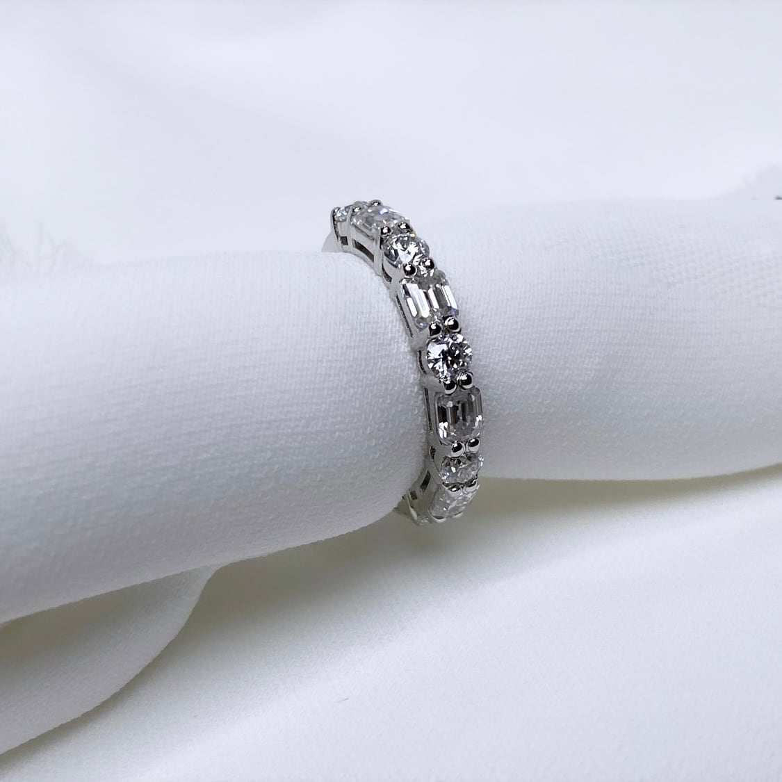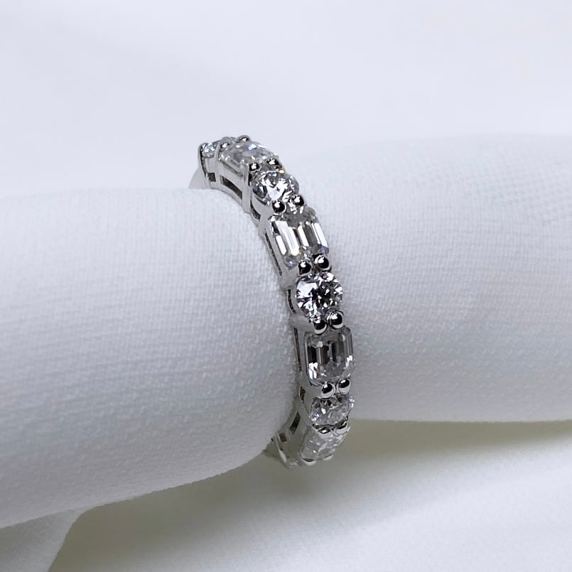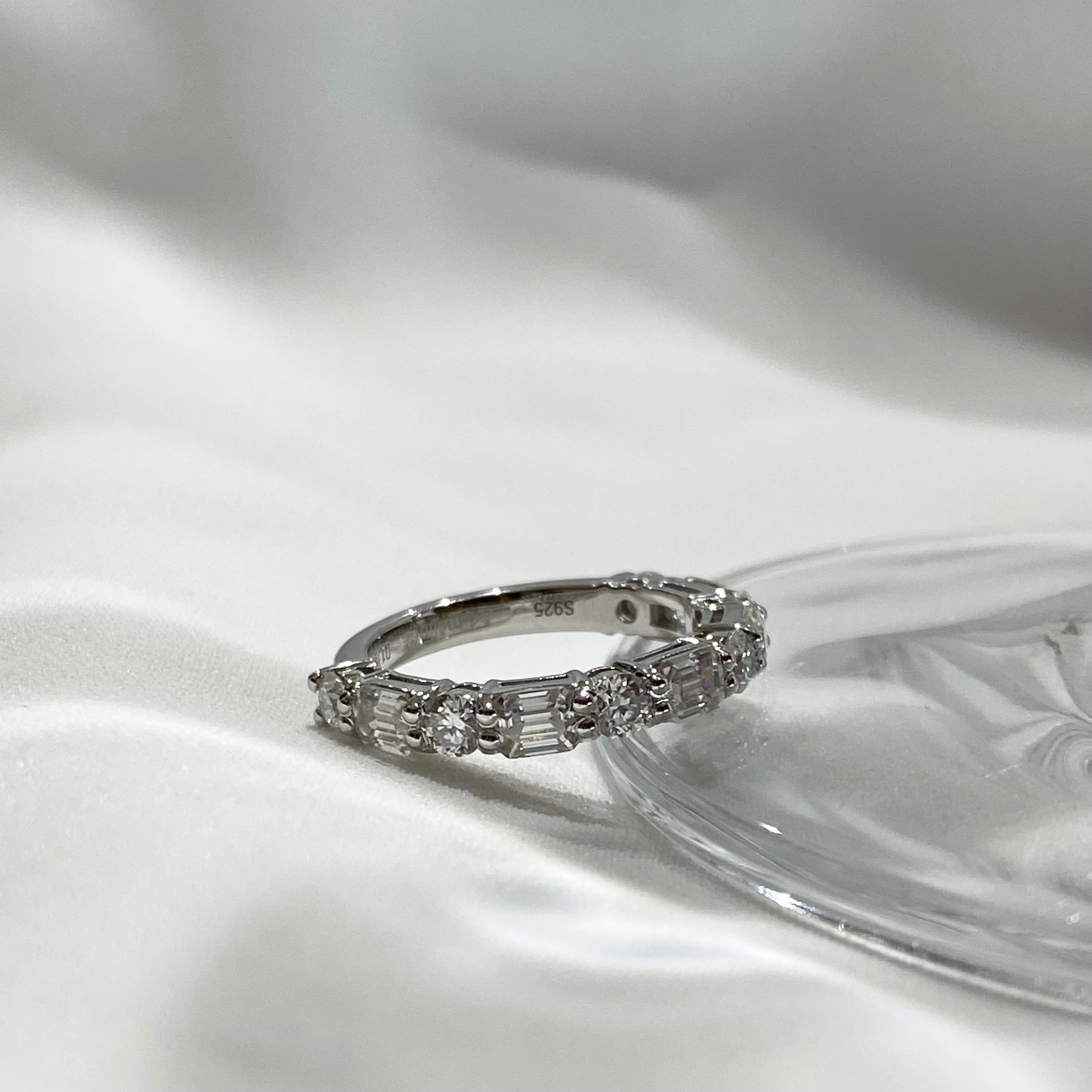 カット違いのモアサナイトが交互にセッティングされたおしゃれ度の高いデザインが魅力!