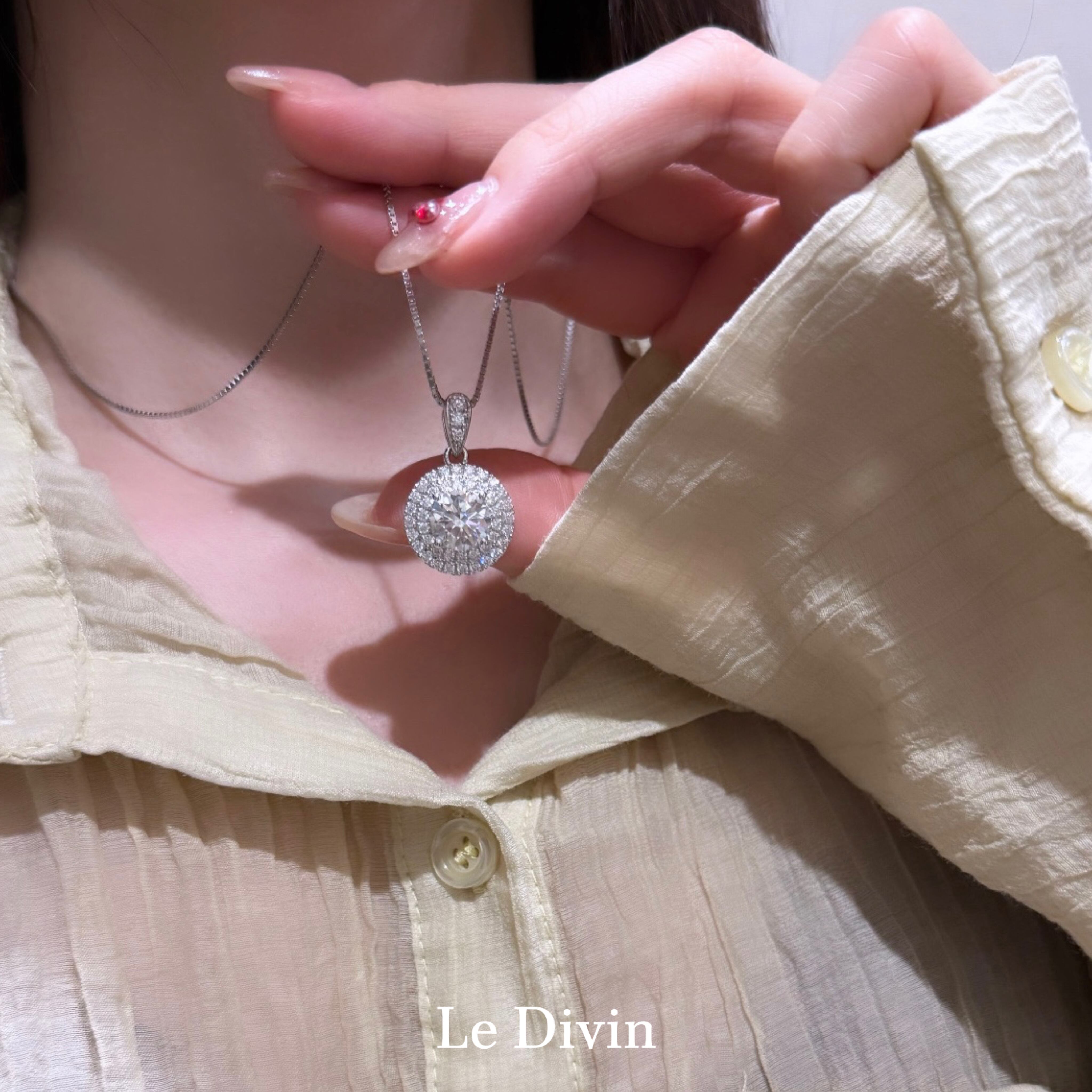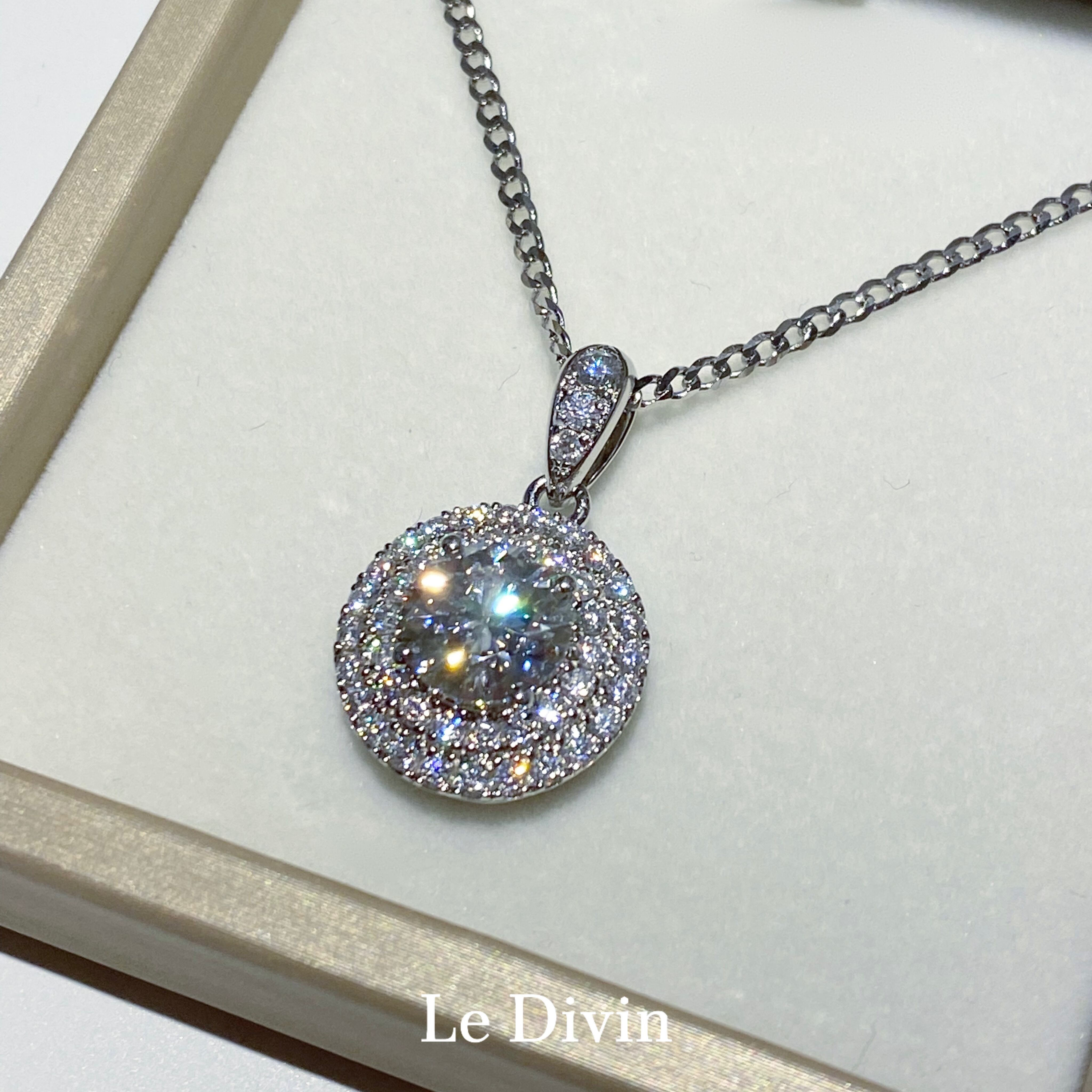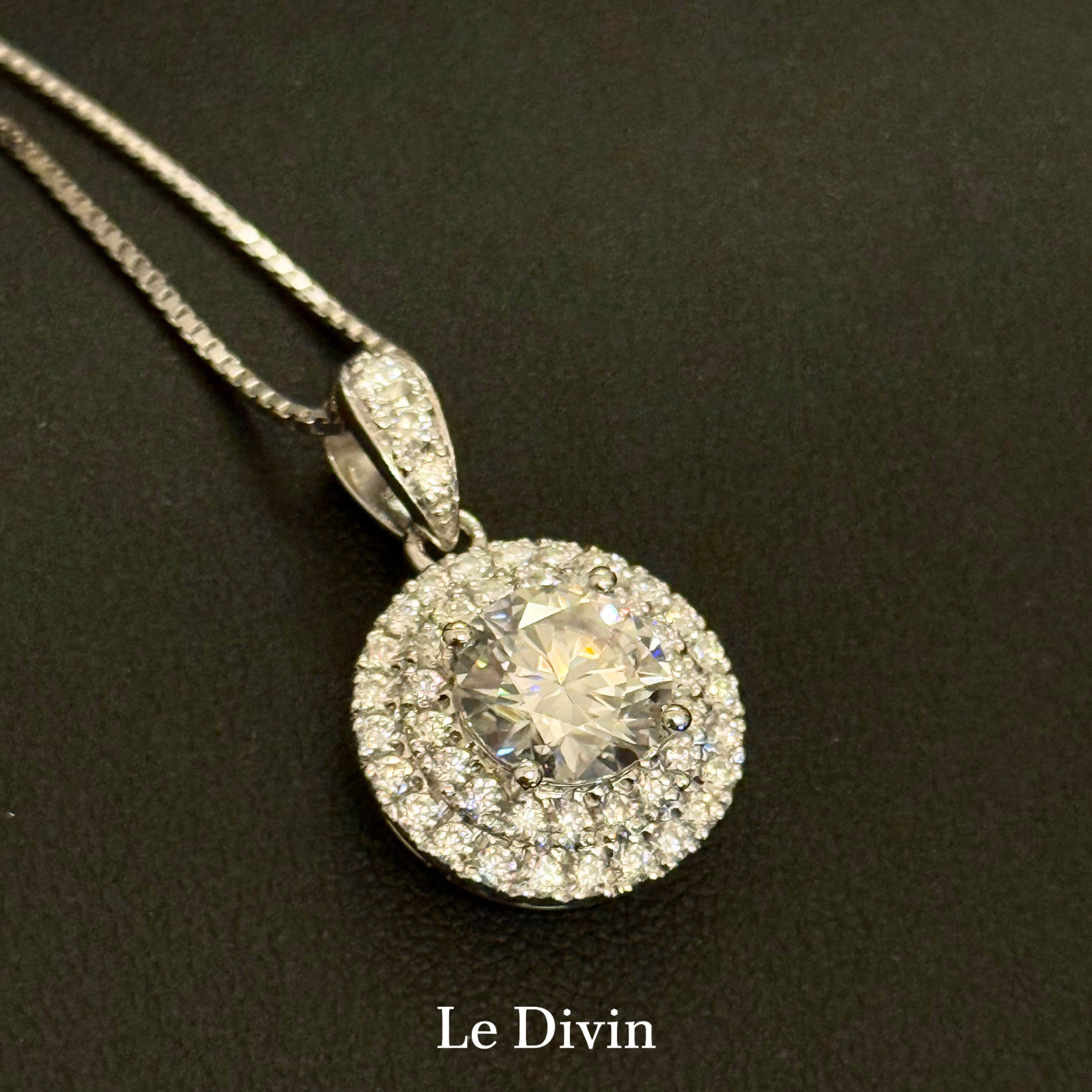 Unisex 3.9ctモアサナイト ヘイローネックレスベネチアンチェーン Silver925プラチナ/ゴールド加工 【MH10506】