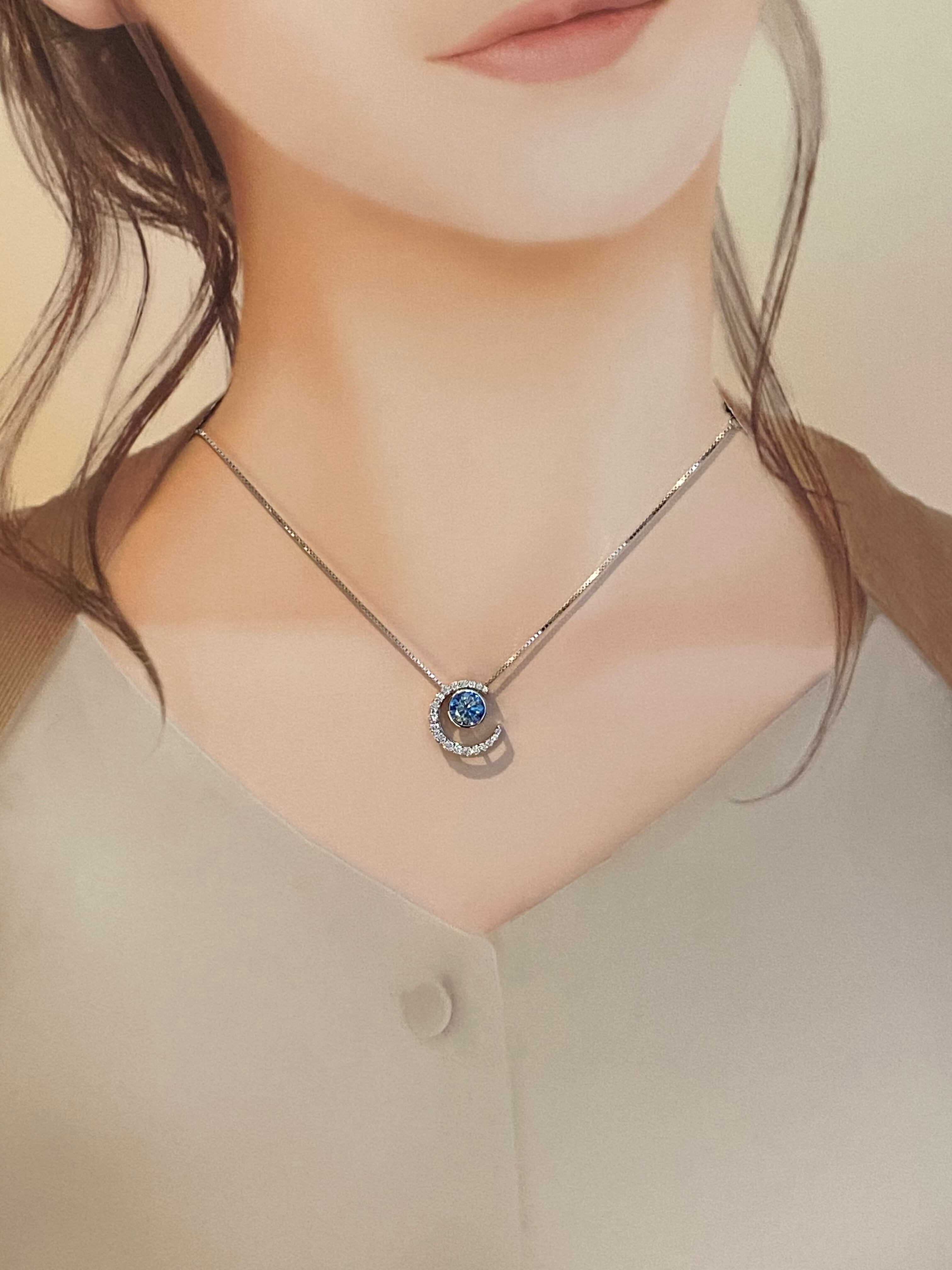 Crescent Moon&Sirius ブルーモアサナイト ネックレス silver925プラチナ/ゴールド加工【CHN8288】