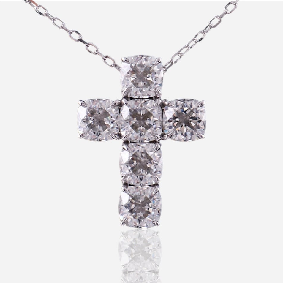 クッションカット モアサナイト クロス ネックレス silver925 プラチナ/ゴールド加工【CC92888】