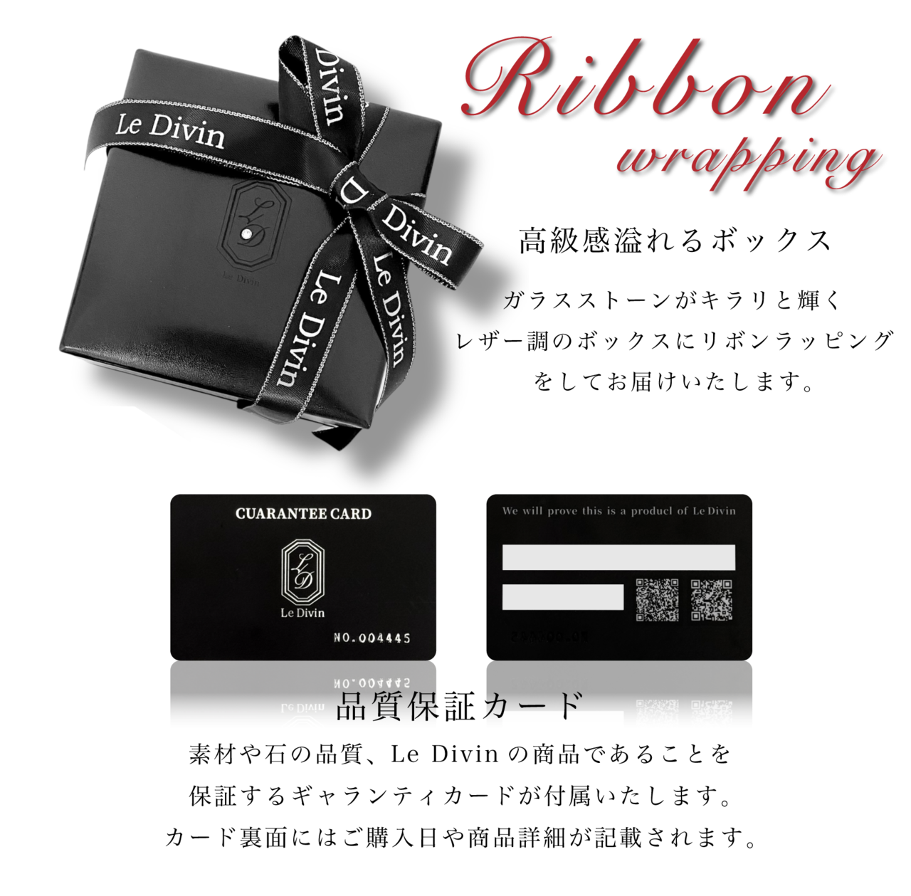 高級レザー調ジュエリーケースにリボンラッピングをしてお届け致します。受け取ってそのままプレゼントにお渡し出来るので、大切な方への贈り物にもオススメです*。