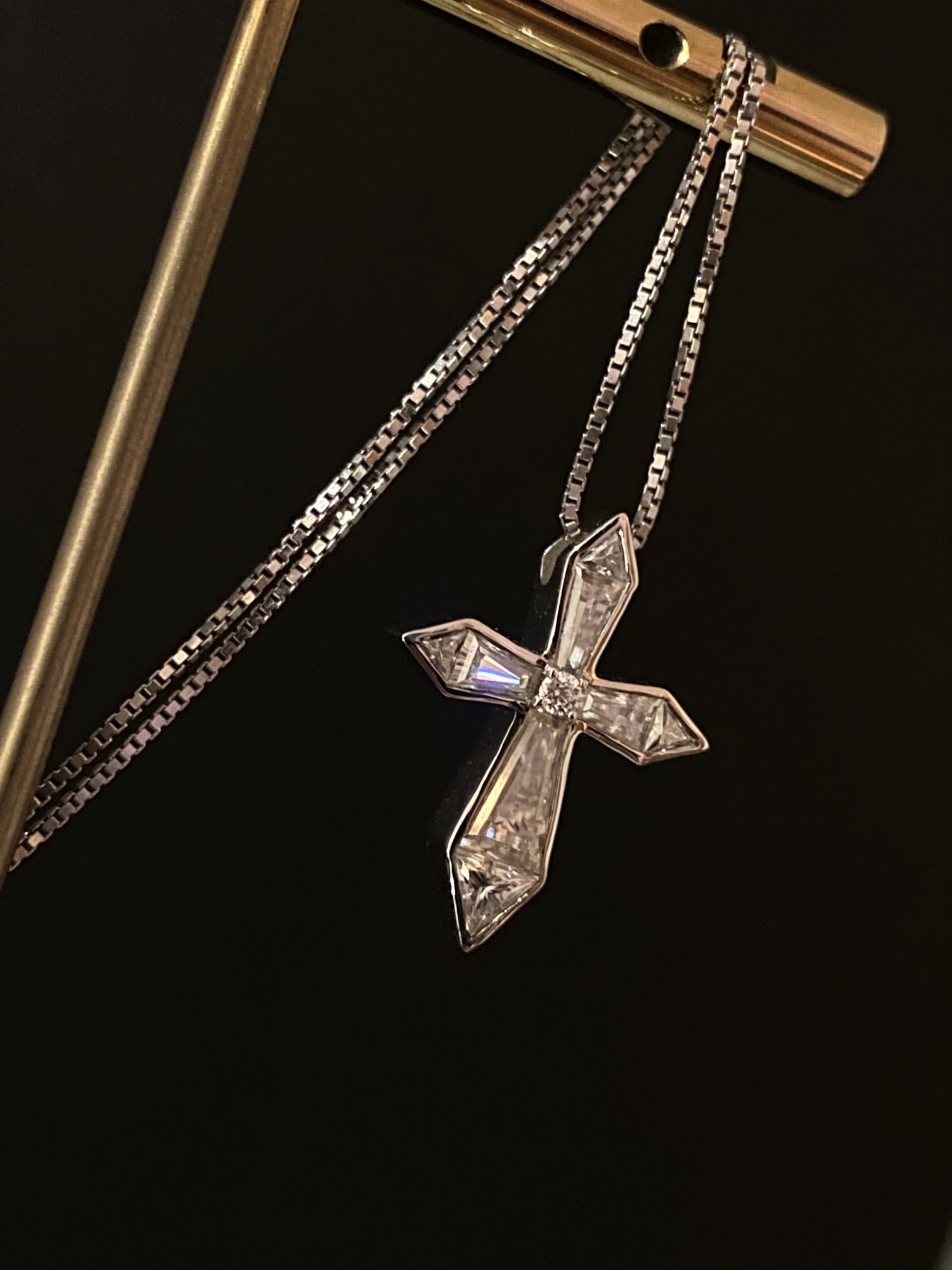 【大人クールなネックレス】バゲットクロス Silver925 プラチナ加工【KT24625】