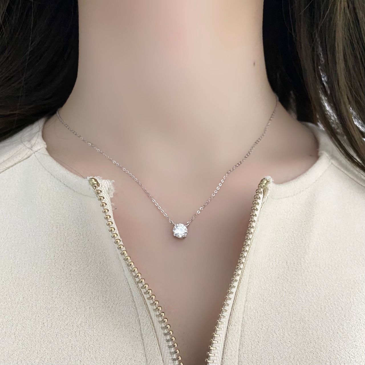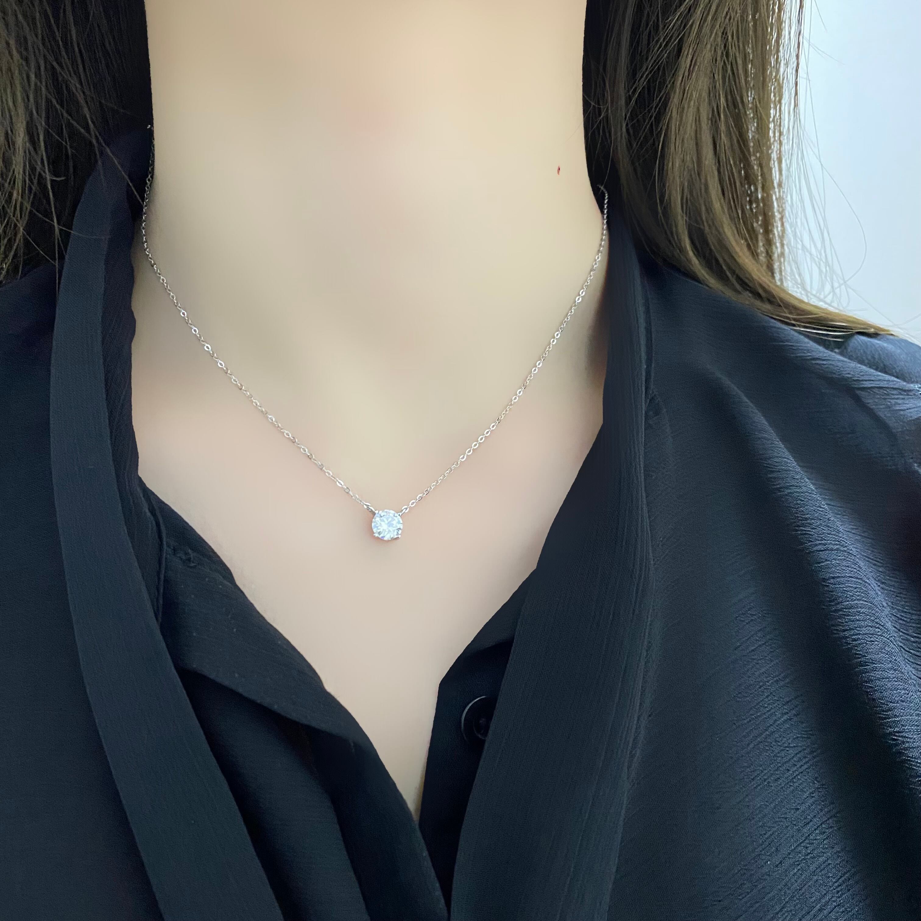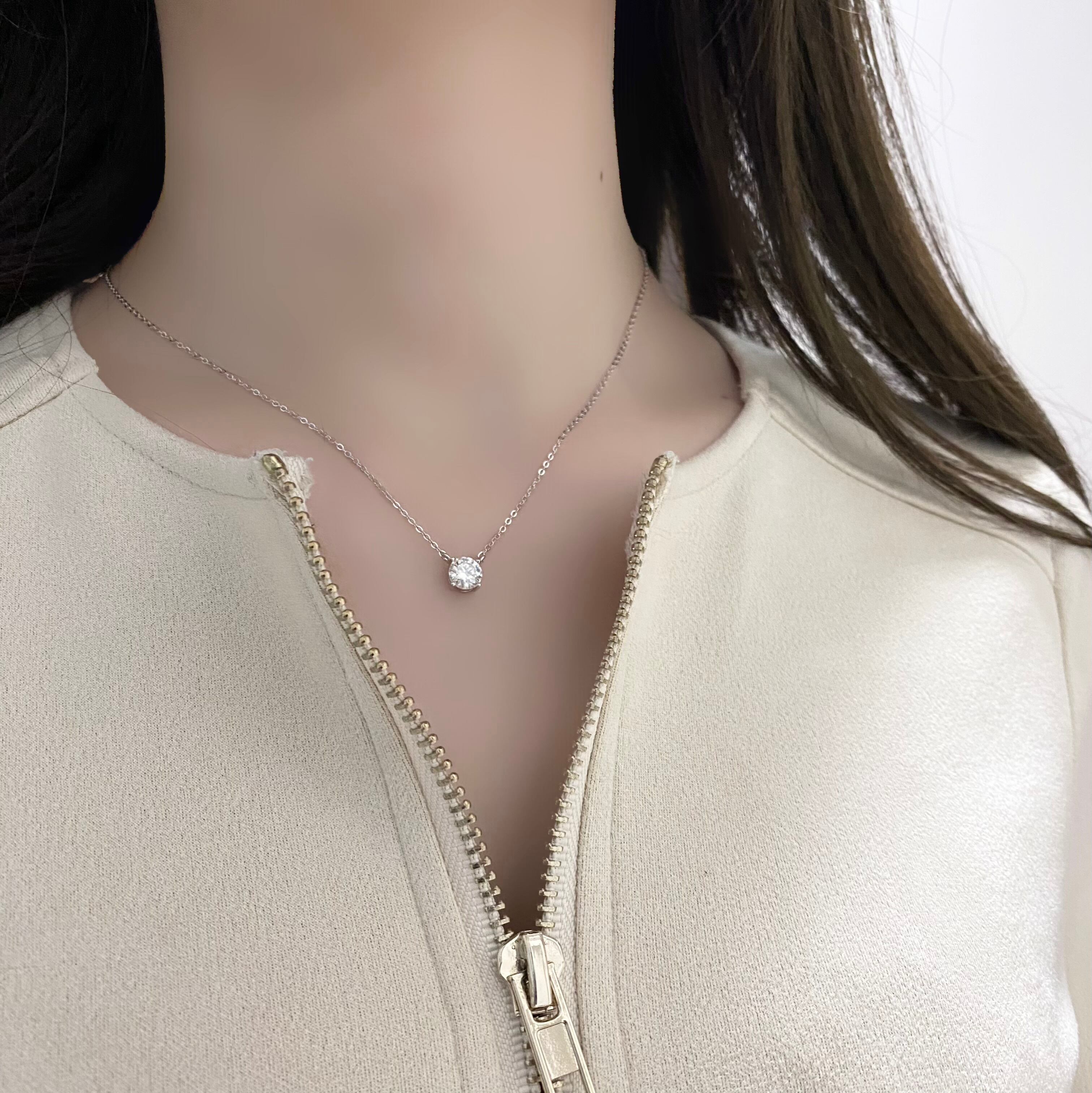 ●1.0ct ソリティア シンプル一粒ネックレス Silver925 プラチナ/ゴールド加工【SSN100】